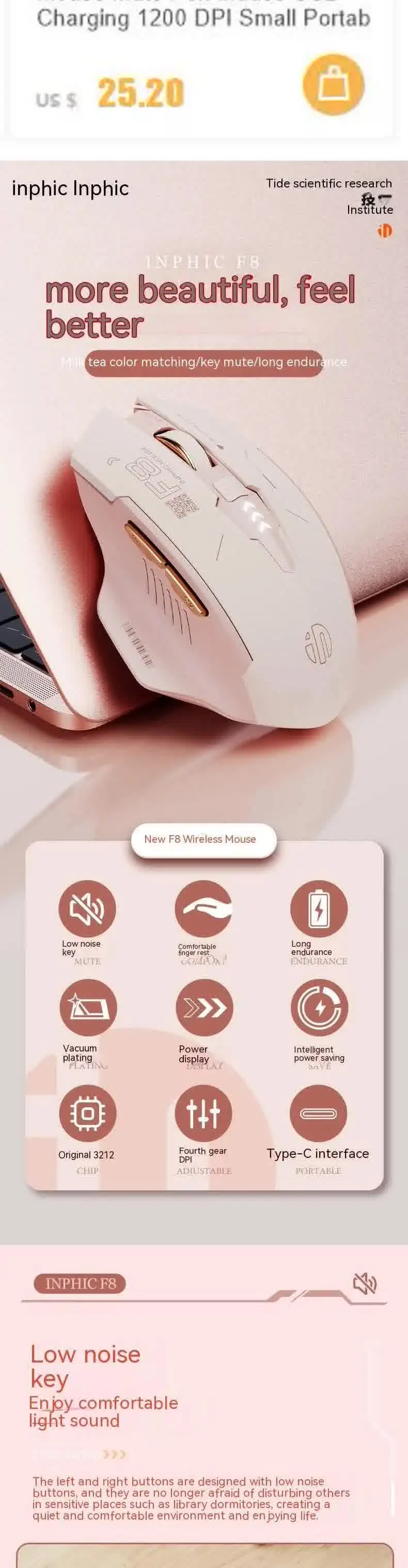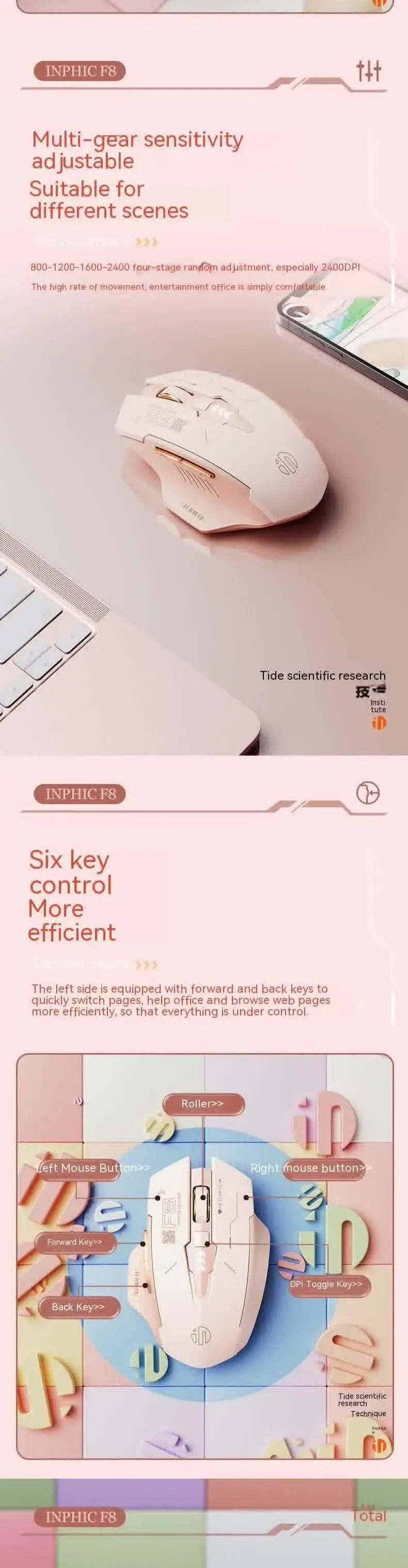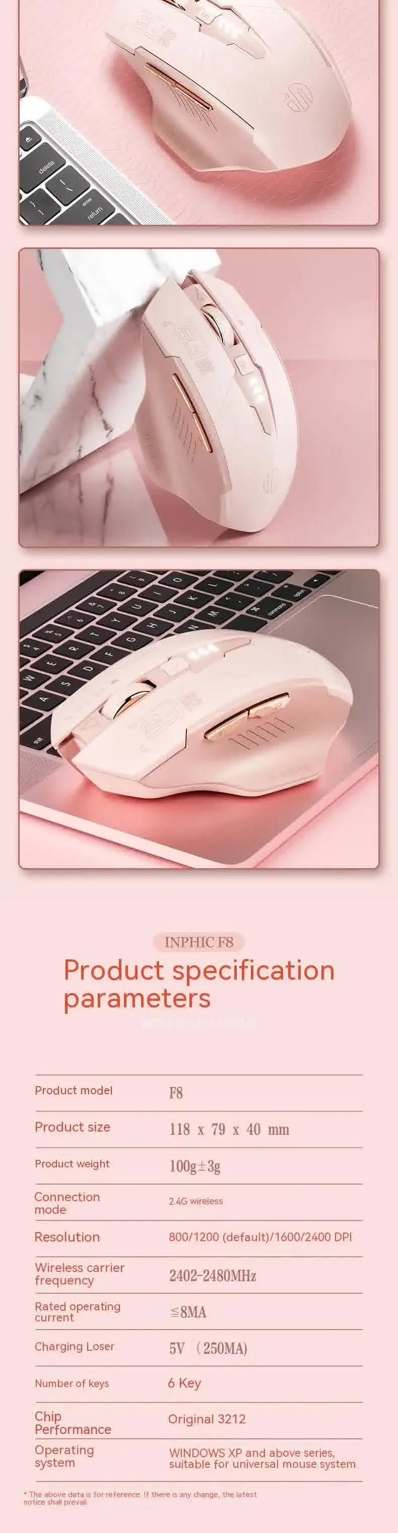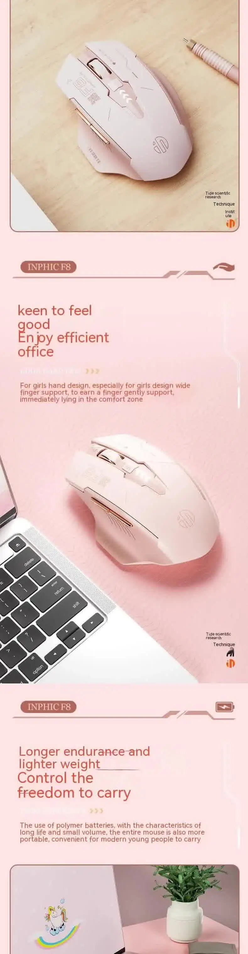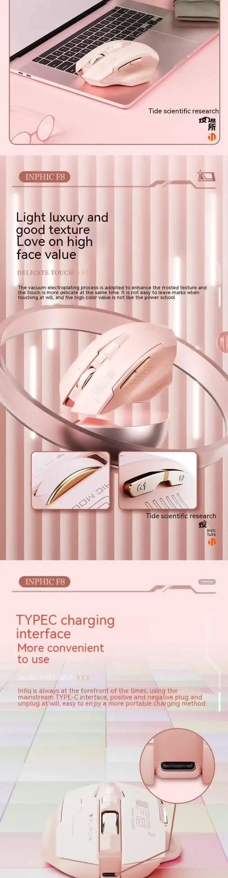 F8 2.4G Wireless Mouse Pink USB 2400dpi Silent Mouse Type-c Rechargeable Mause Gaming For Computer Game Accessory Girls Gift