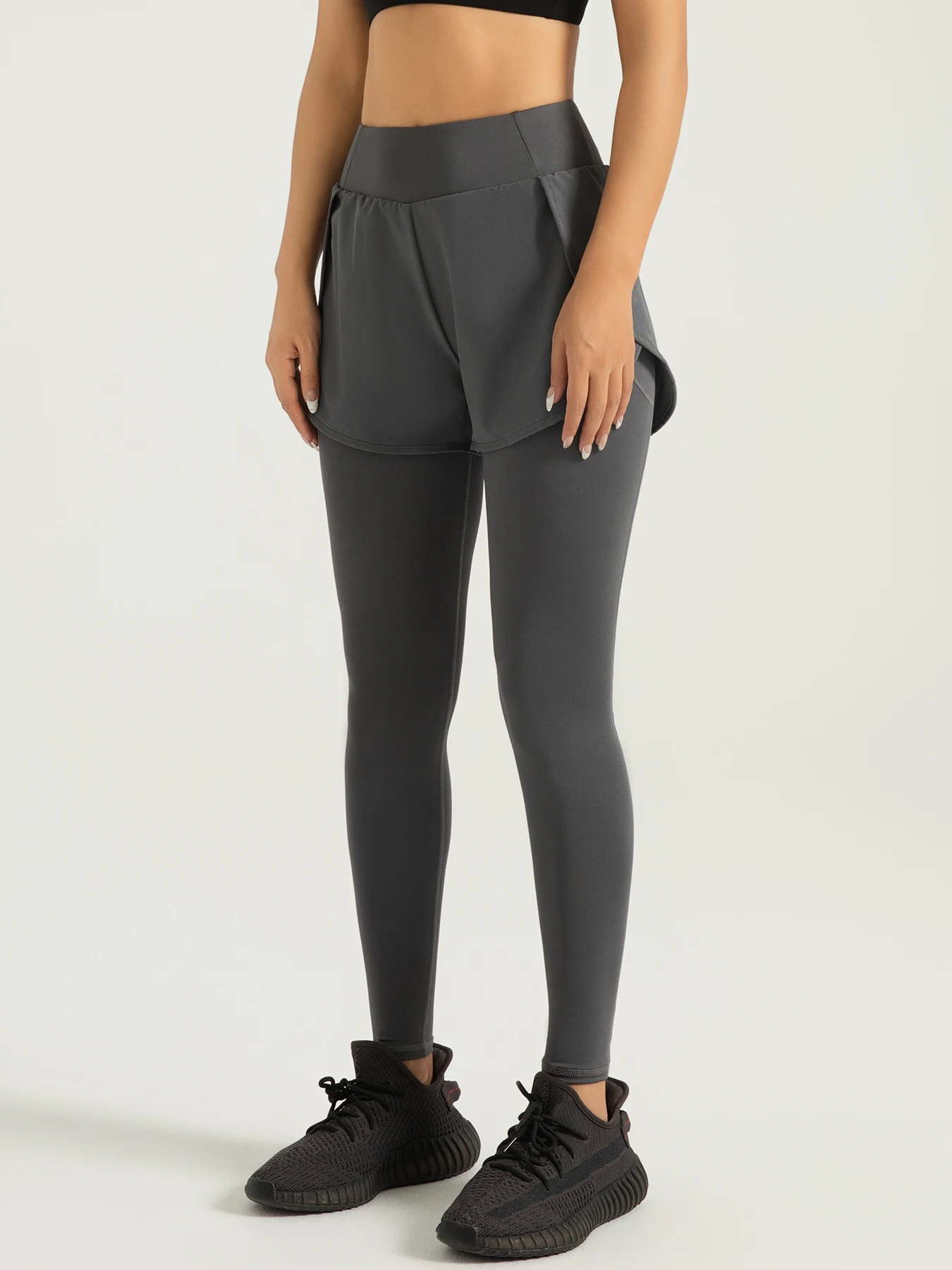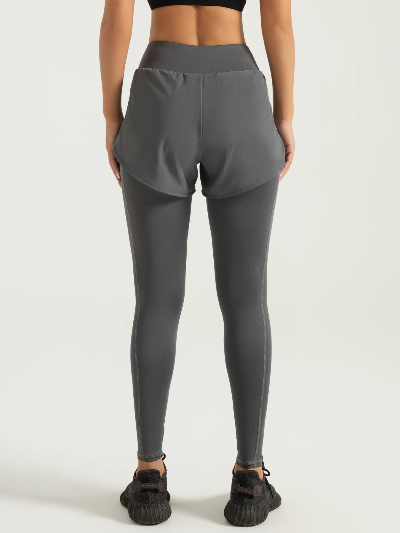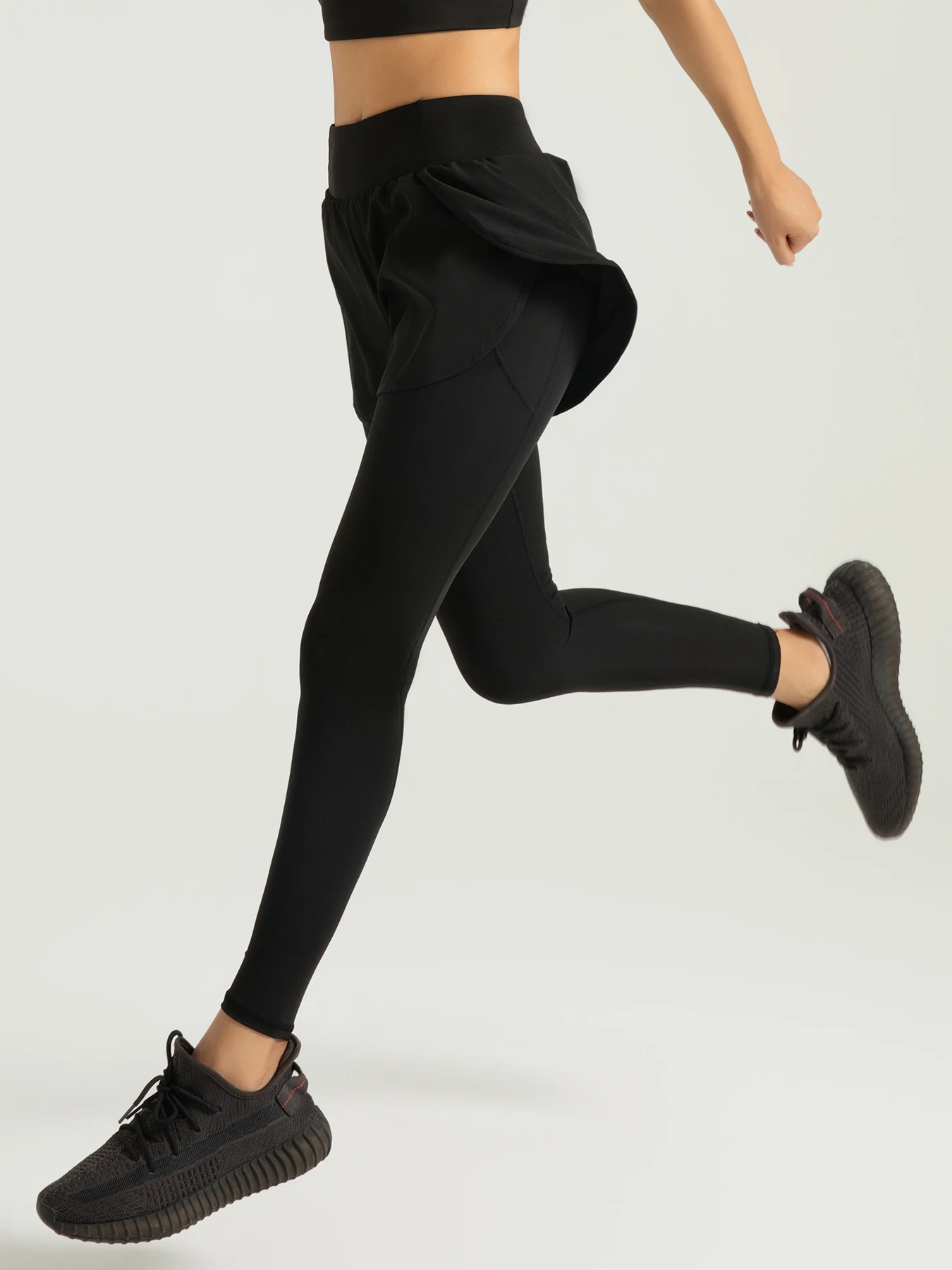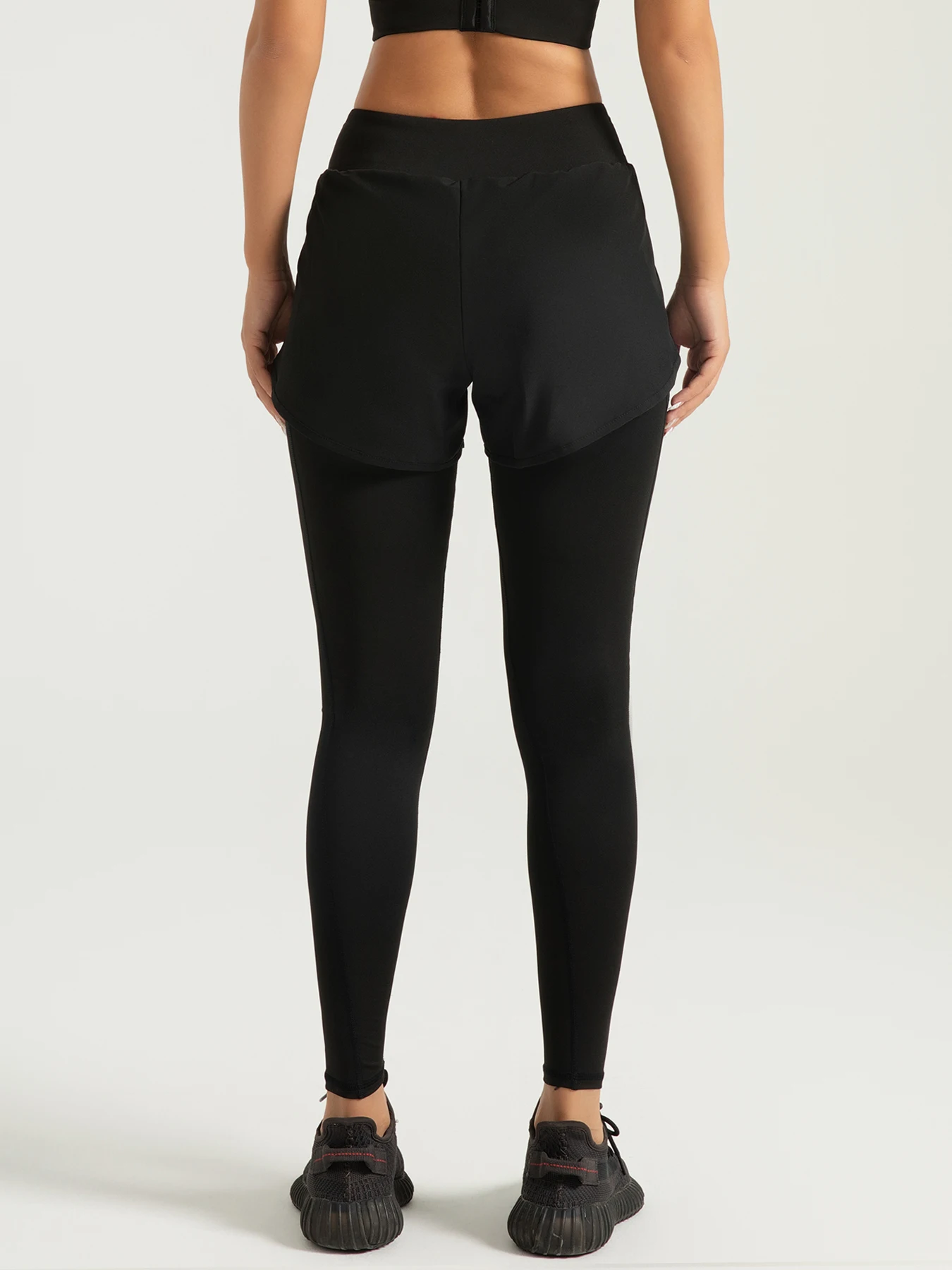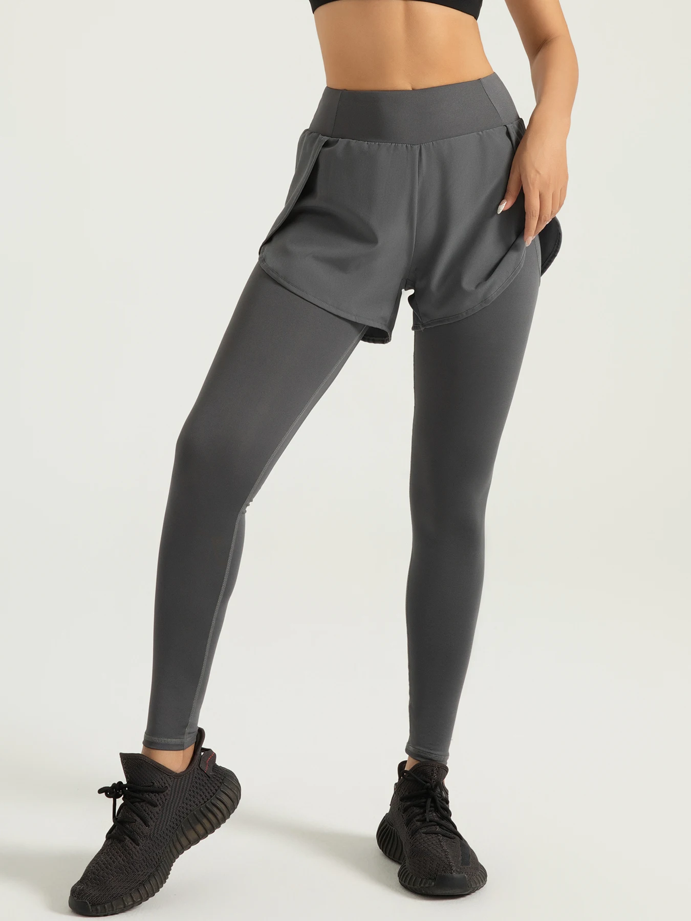 Fake Two-piece Compression Sports Leggings For Women, 2-in-1 High Waist Moisture-wicking Yoga Leggings, Women’s Activewar