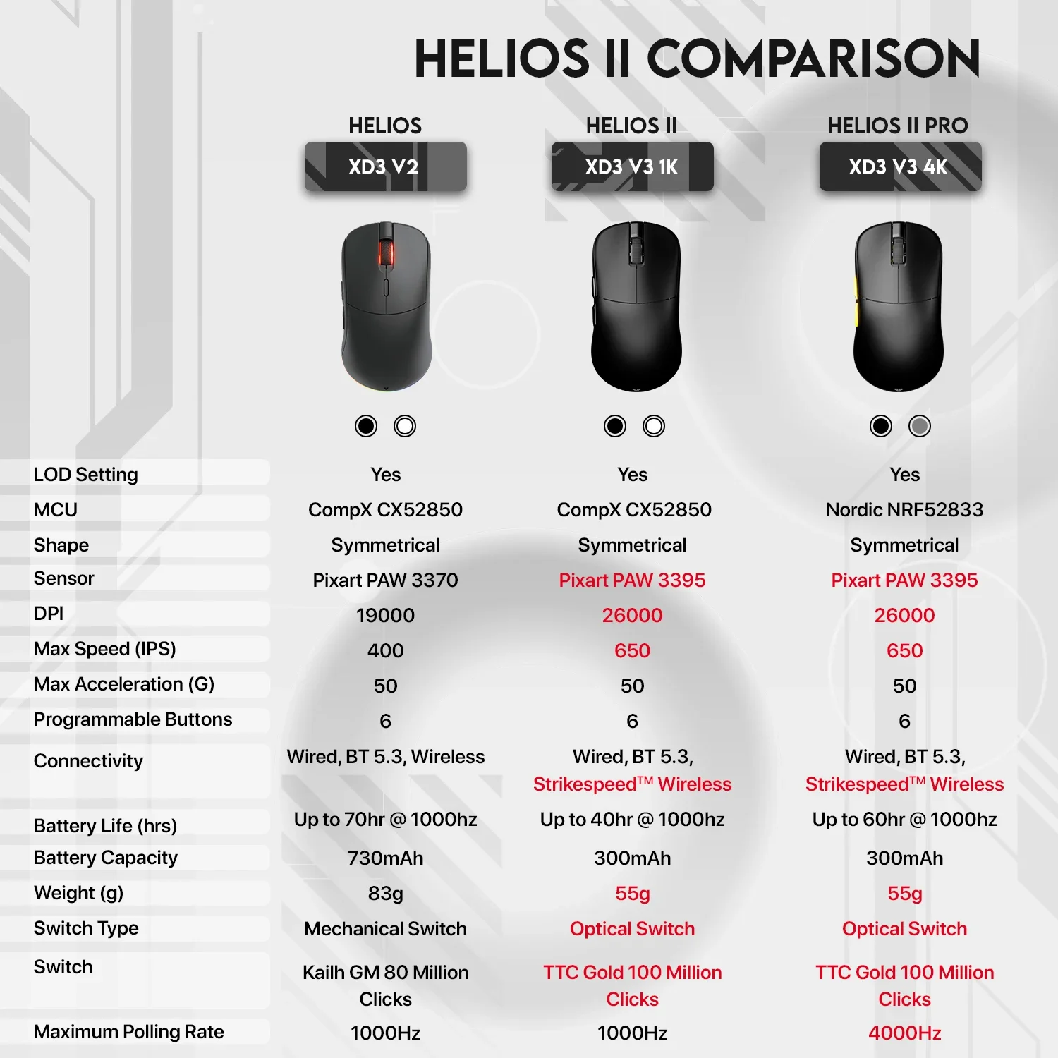 FANTECH HELIOS II XD3v3 Gaming Esports Mouse Wireless BT 55G Lightweight Mice PAW3395 26000DPI TTC Gold Switch For Laptop PC