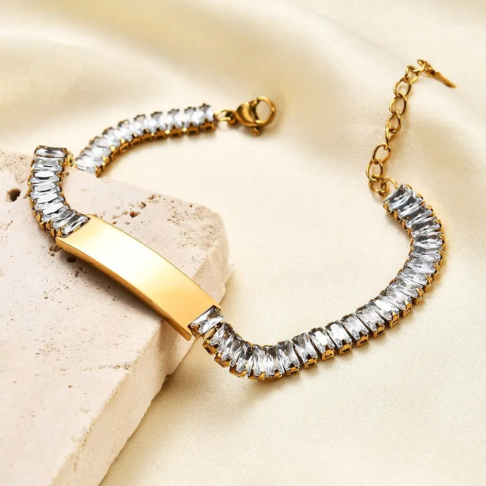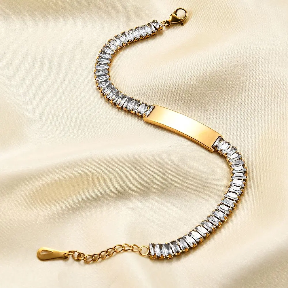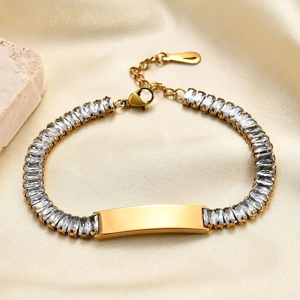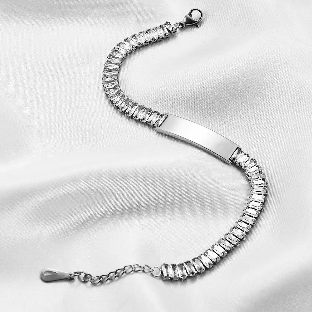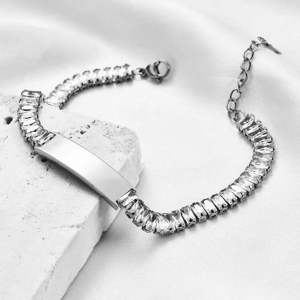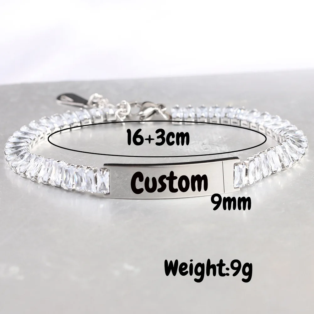 Fashion Stainless Steel Couple Bracelet 9mm Smooth Laser Engraved Logo Couple Set Zircon Bracelet for Women Jewelry Accessories