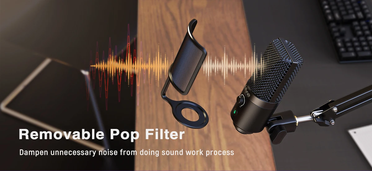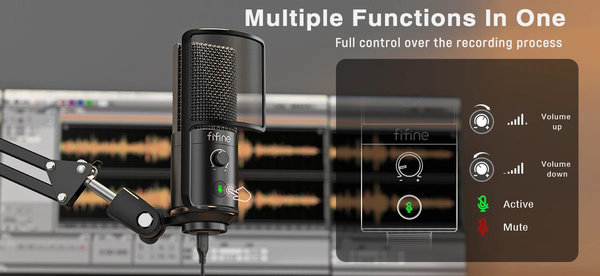 Featured with function keys, it makes your entire recording experience more efficient. Just tap the mute button on the recording microphone without unplugging the microphone or using the mouse when you are podcasting. You can also adjust the mic gain control right away – no need to wait.