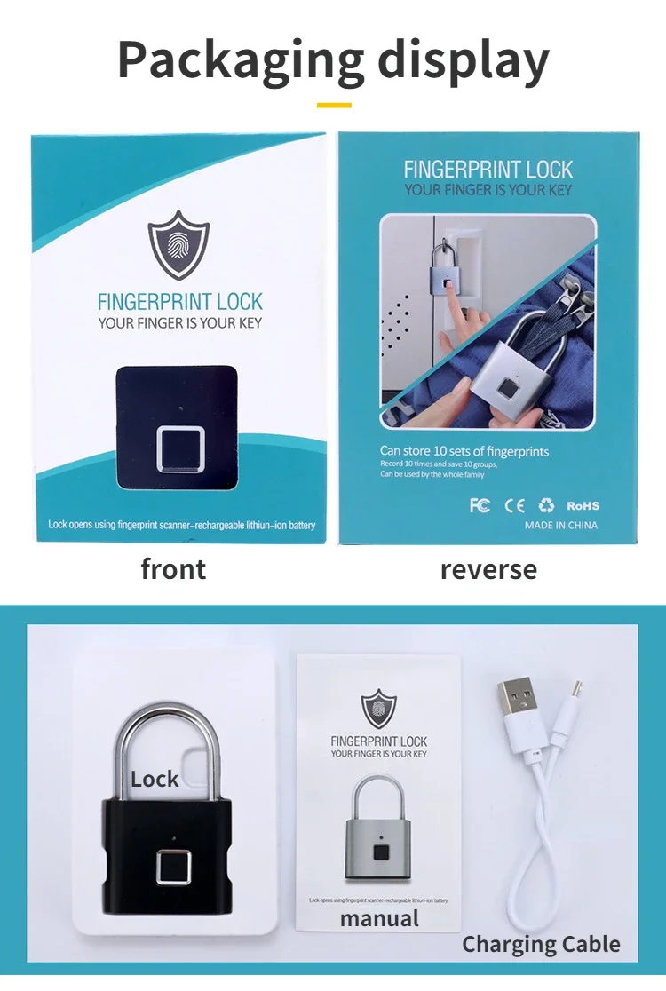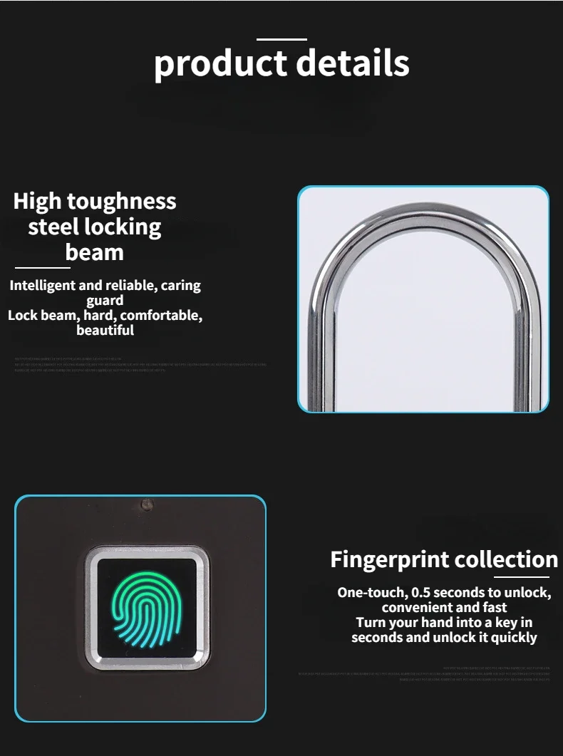Fingerprint Padlock Waterproof Keyless Mini Door Lock USB Rechargeable Fingerprint/APP Unlock Zinc Alloy Metal Smart Lock
