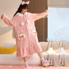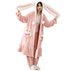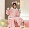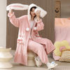 Fluffy Long-eared Hooded Nightgown With Trousers 2 Piece Set Winter Flannel Thickened Warm Pajamas Set Pink Cute Cartoon Robes