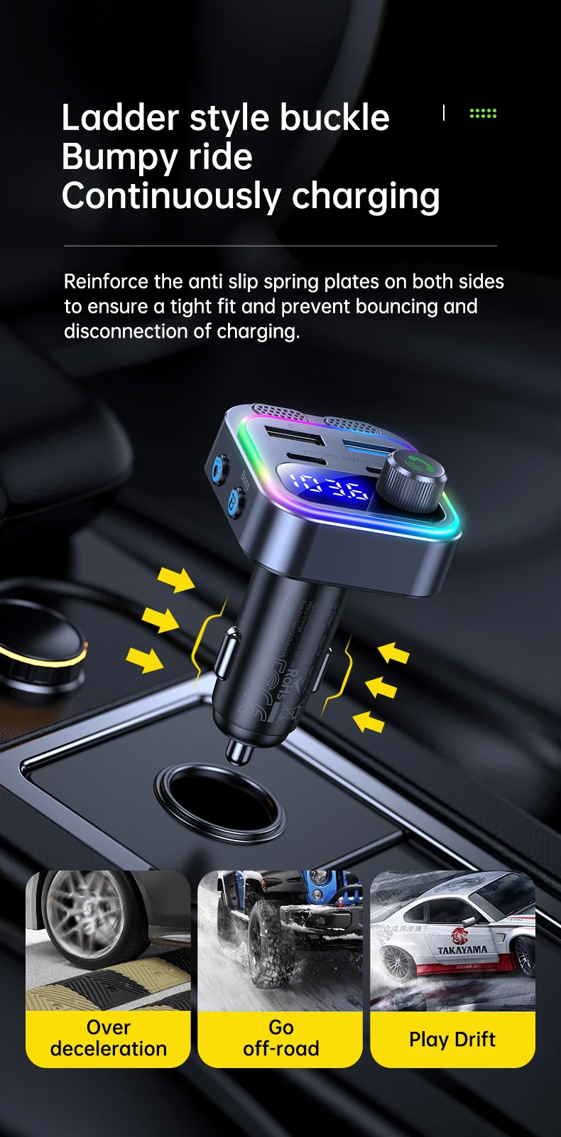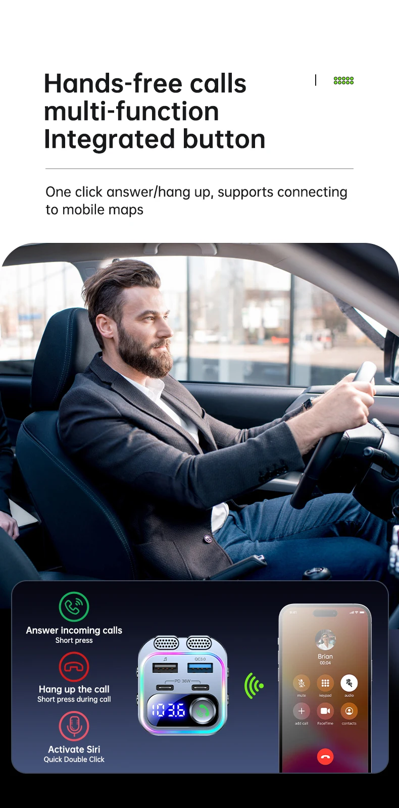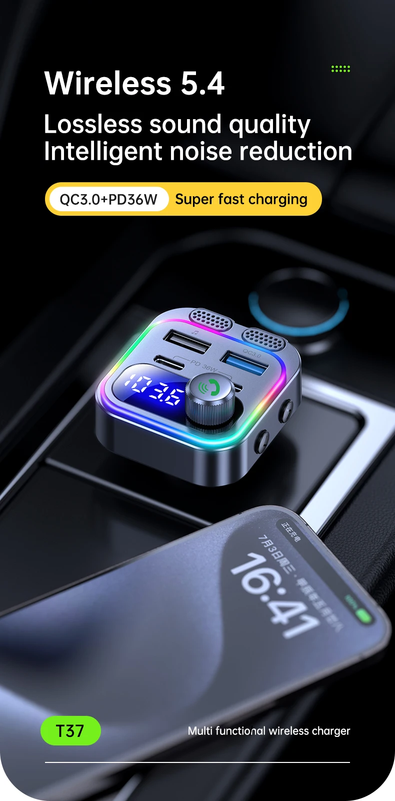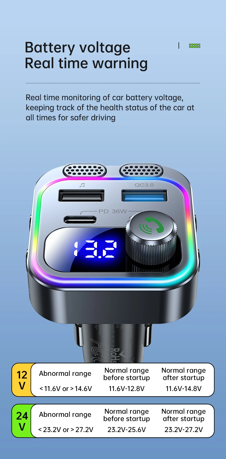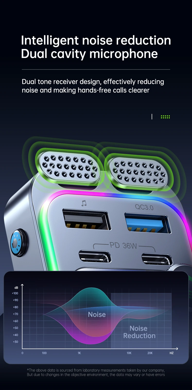 FM transmitter Bluetooth 5.4 dual microphone calling car MP3 U disk music player 66W USB car charging 66W fast charging PD36W