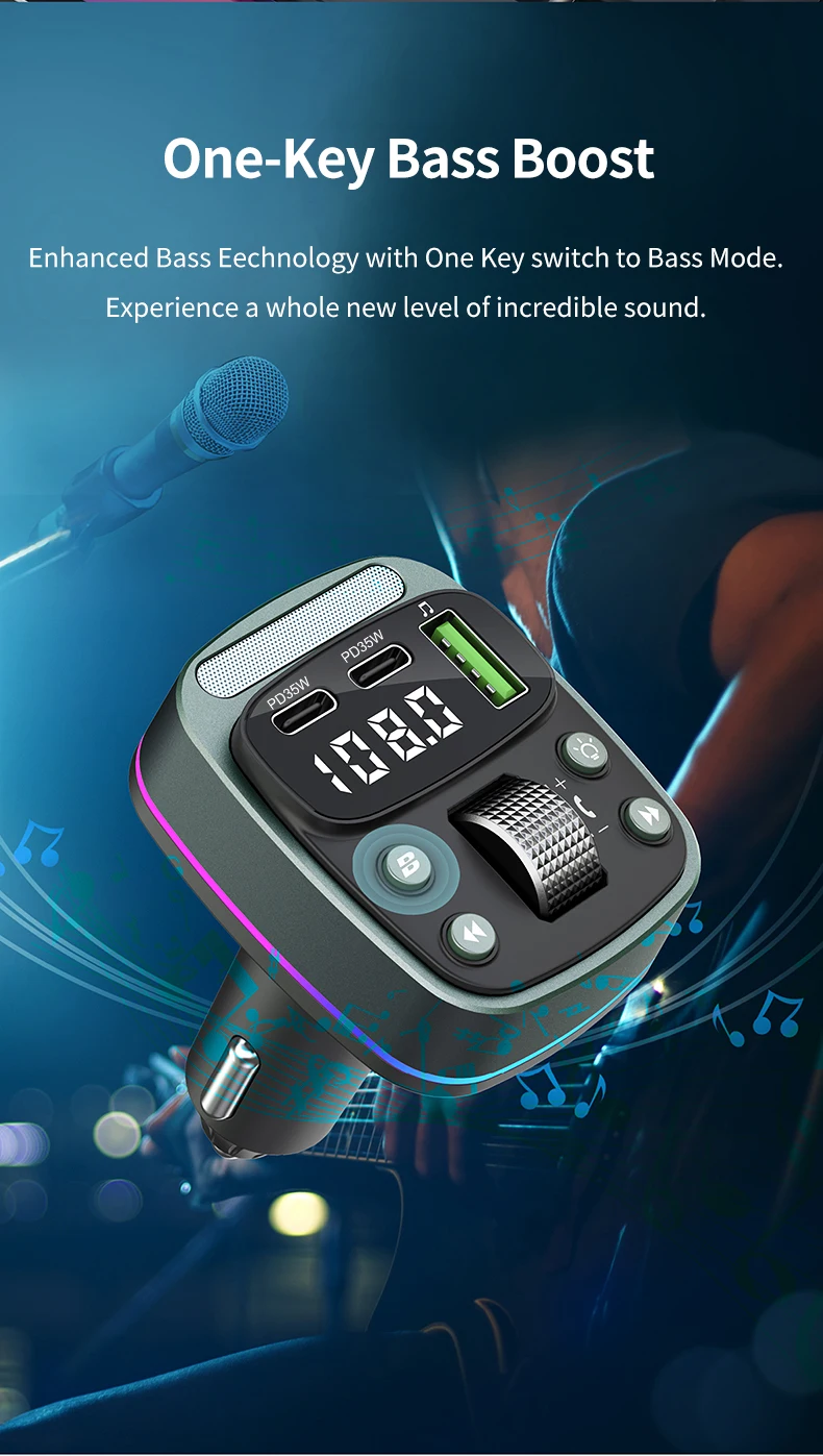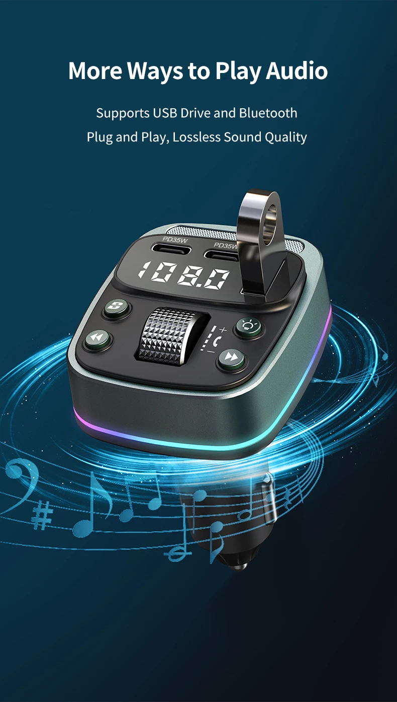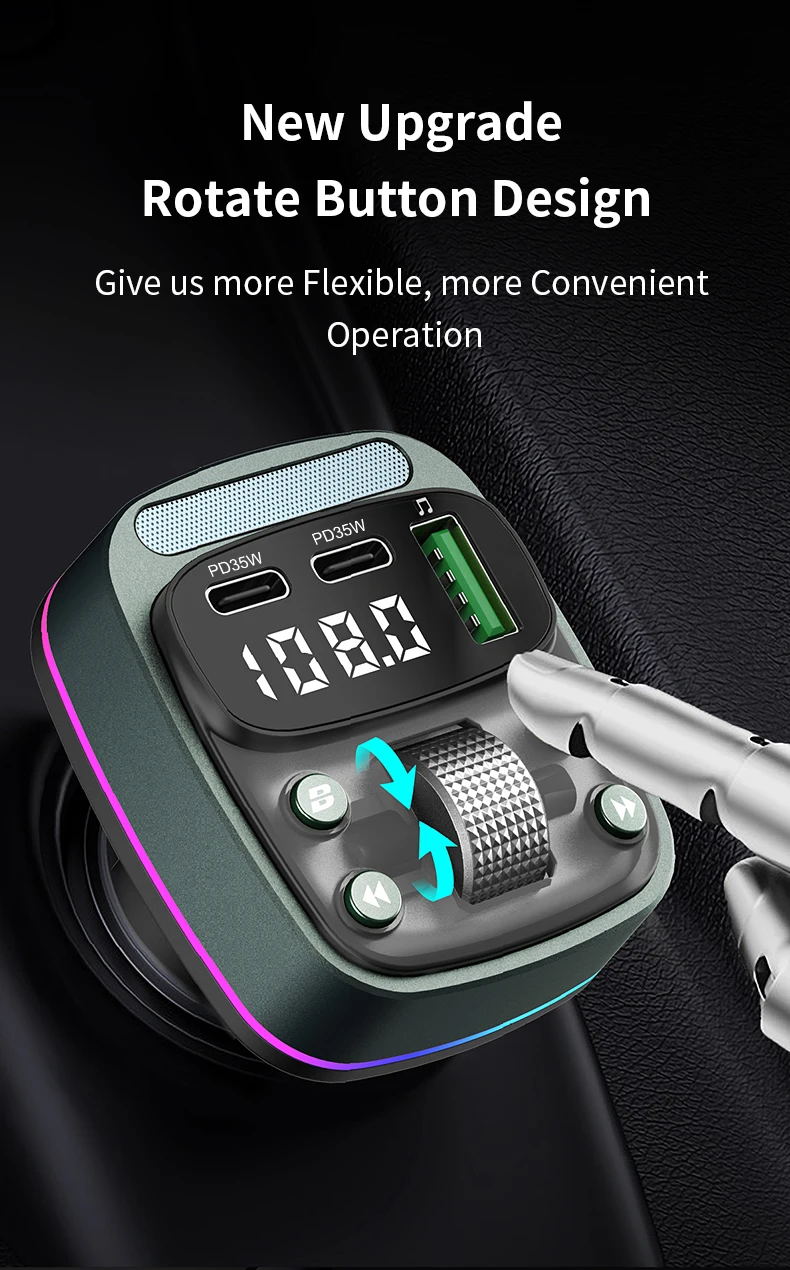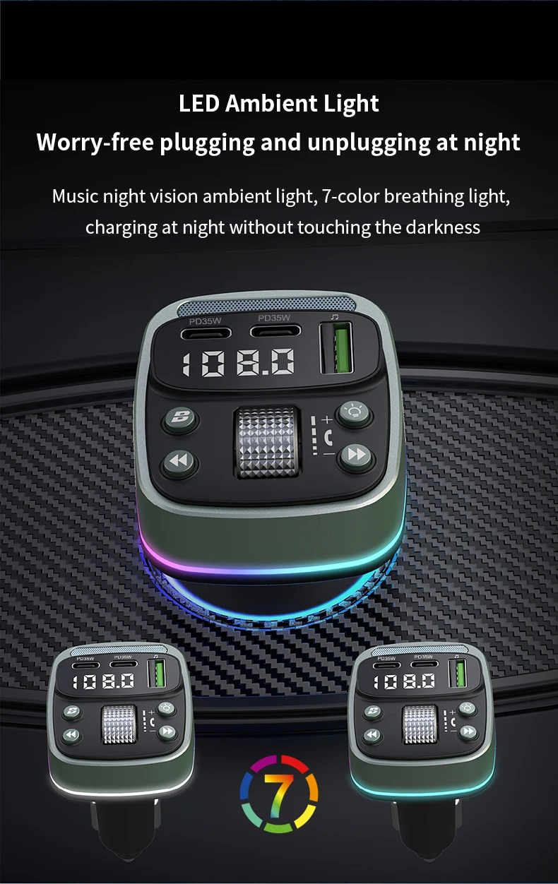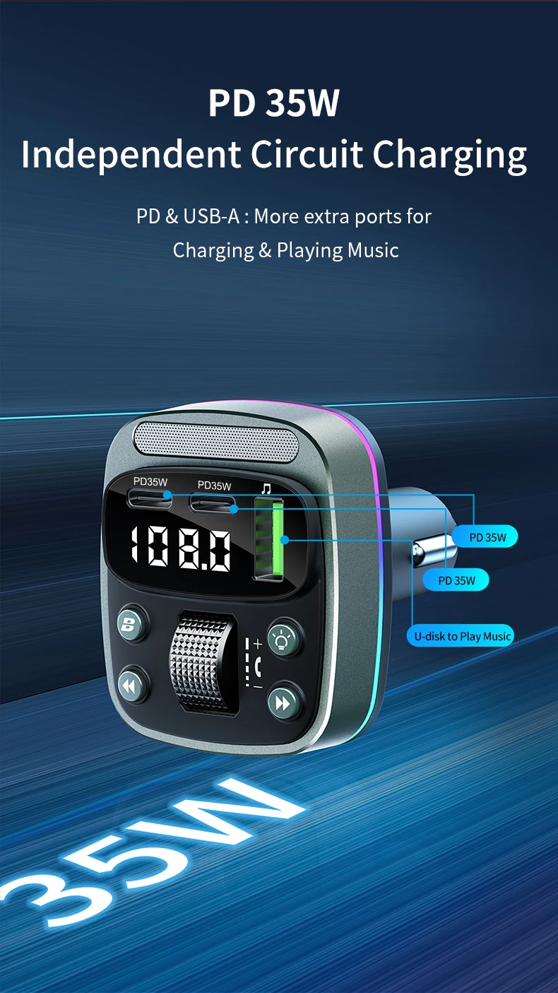 FM transmitter Bluetooth car MP3 music player USB flash drive lossless car charger dual PD35W PD Type-c fast charging handsfree