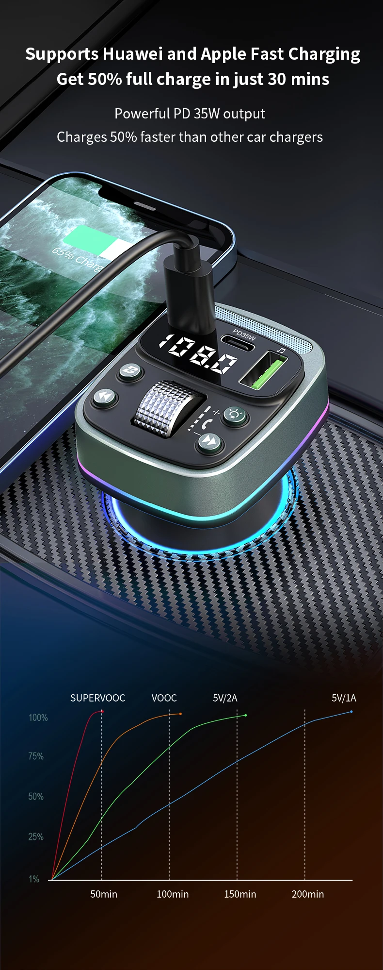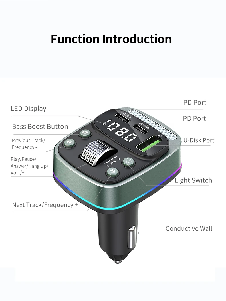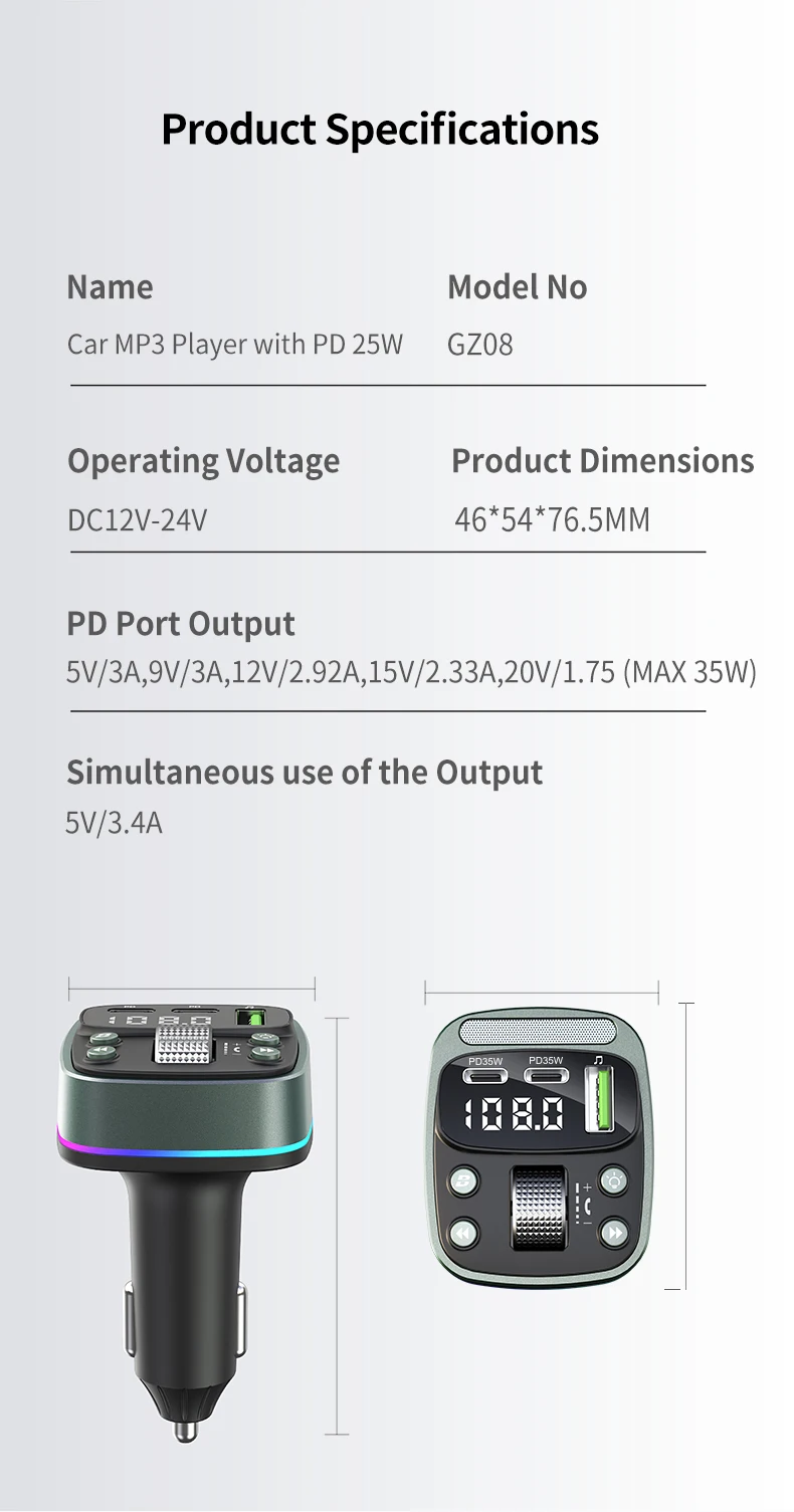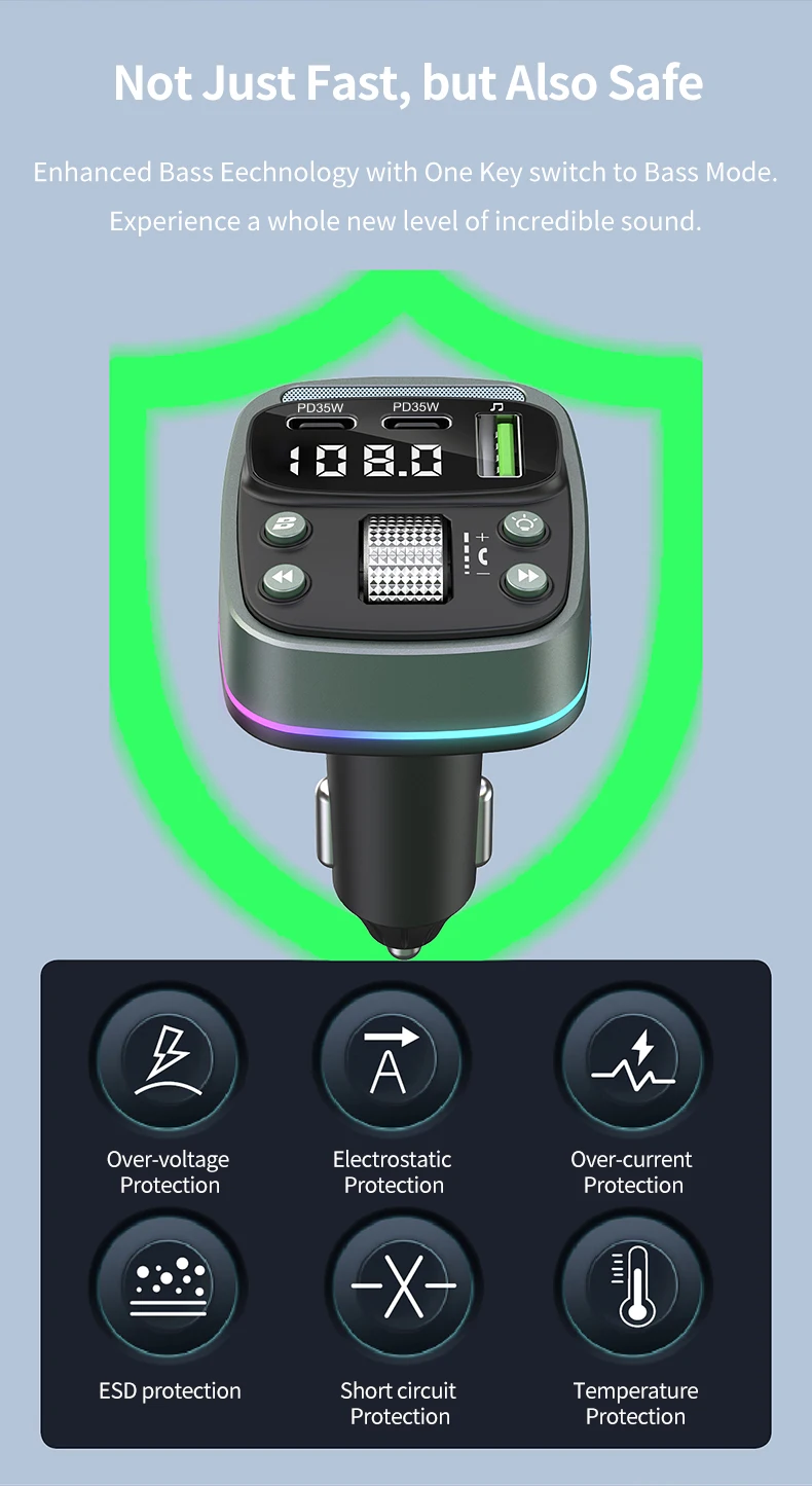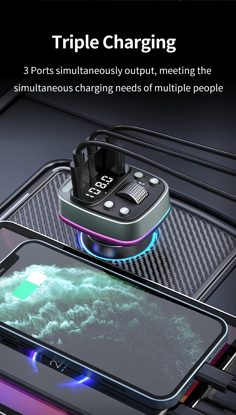 FM transmitter Bluetooth car MP3 music player USB flash drive lossless car charger dual PD35W PD Type-c fast charging handsfree