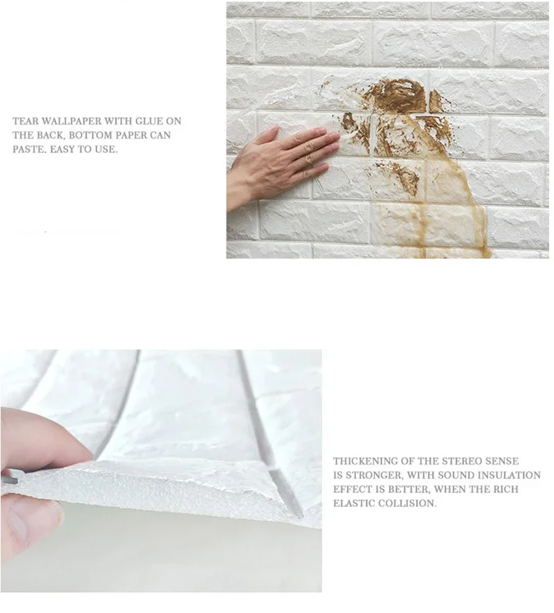 Material:  Waterproof PE Foam Brick Pattern Wall Stickers