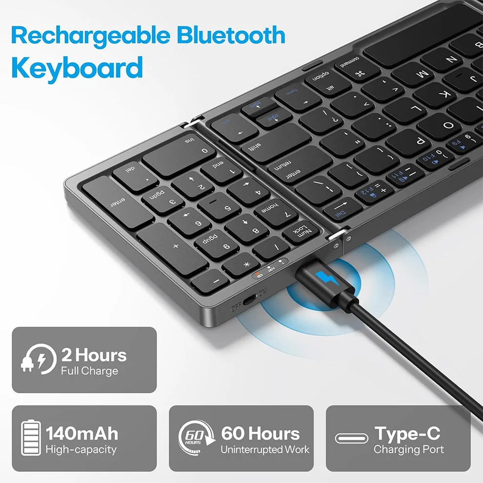 【Folding Keyboard with Numeric Keypad】Equipped with numeric keypad to facilitate quick calculation and numeric input, greatly enhance efficiency.