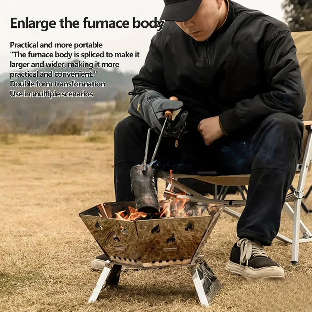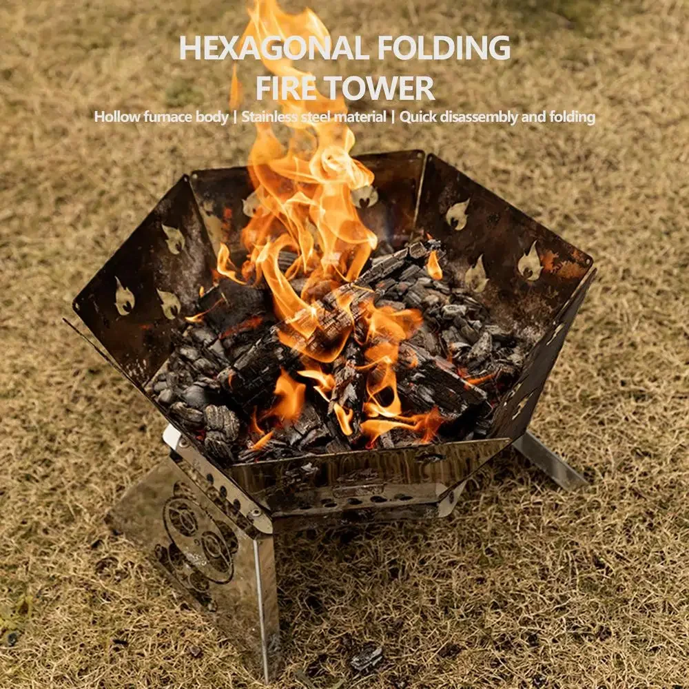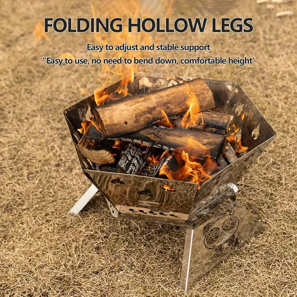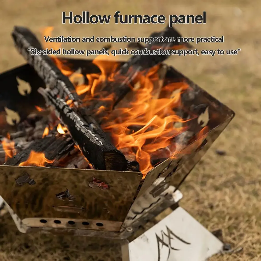 2.Improved Performance: Boasting a sturdy hexagonal frame and a unique hollow panel design for swift combustion, this foldable camping stove provides stability and efficient cooking.