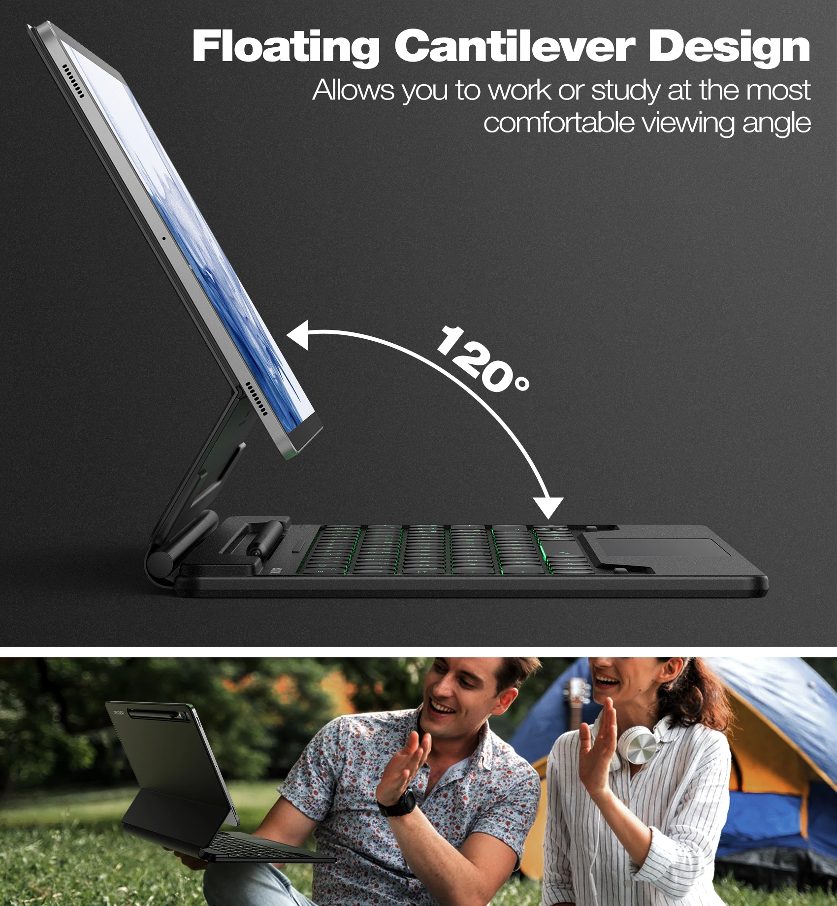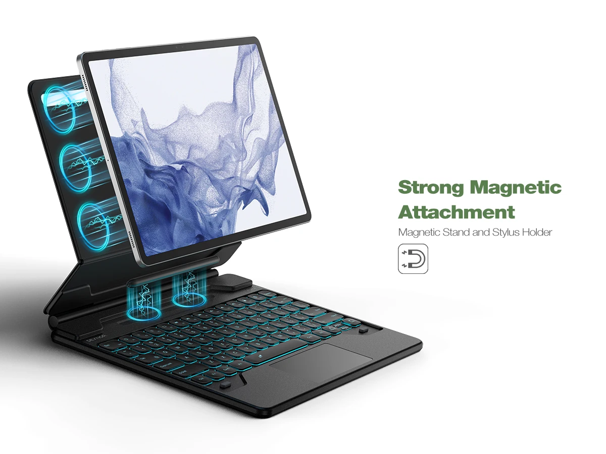 【EASY-SET MAGNETIC STAND】The durable aluminum alloy hinge guarantees a sturdy magnetic connection, instantly transforming your tablet into a laptop. Enjoy a floating cantilever stand with customizable angles tailored for typing, reading, and immersive viewing. Ideal for the on-the-go lifestyle, it’s the perfect companion for travel, business, and work, ensuring seamless adaptability to your needs.