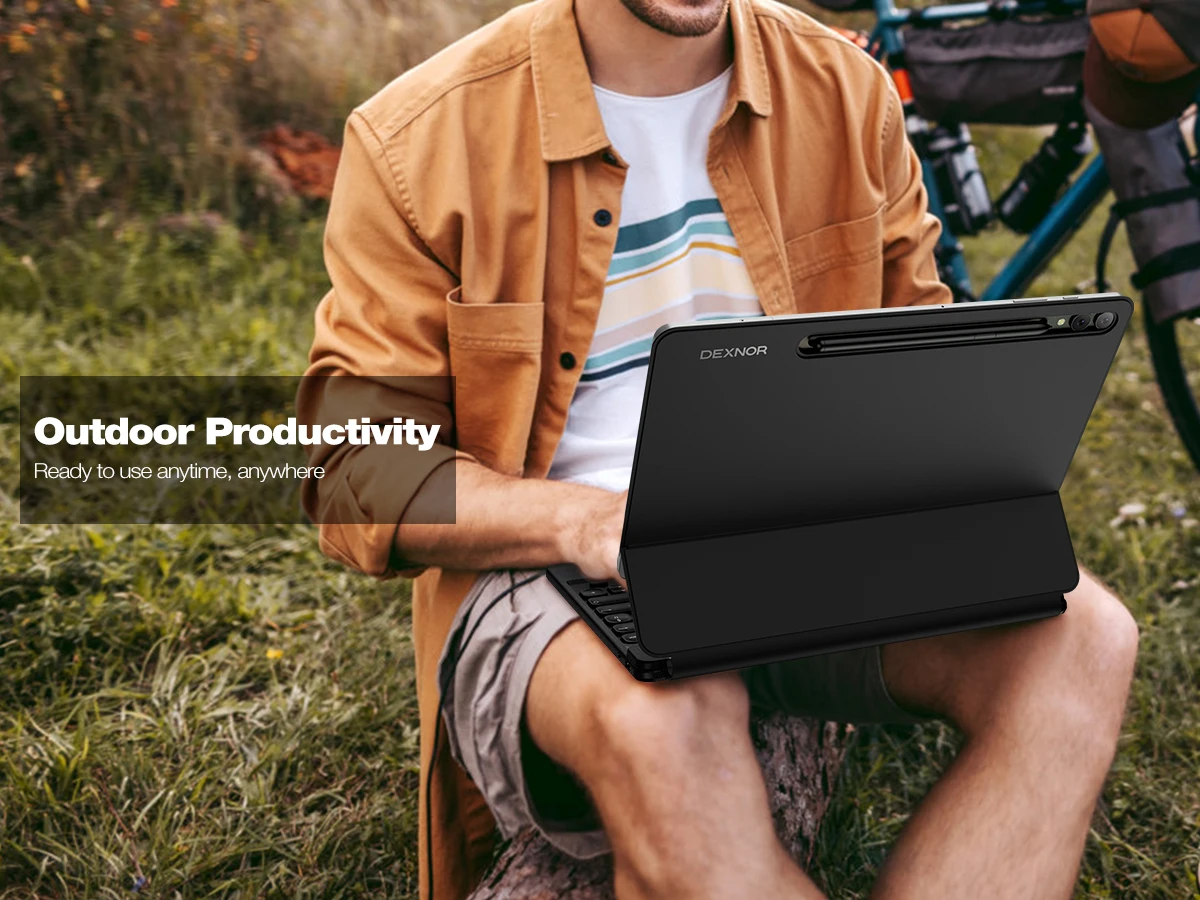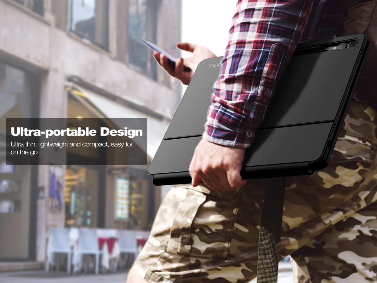 【TABLET/DEX MODE SWITCHABLE】Our scissor-switch keys work like magic – press halfway for quiet, uninterrupted typing. A row of handy shortcuts gives you instant control over media and volume. Paired with DeX mode, your tablet transforms into a laptop effortlessly. Switch modes, type with ease, and boost your productivity in a snap!