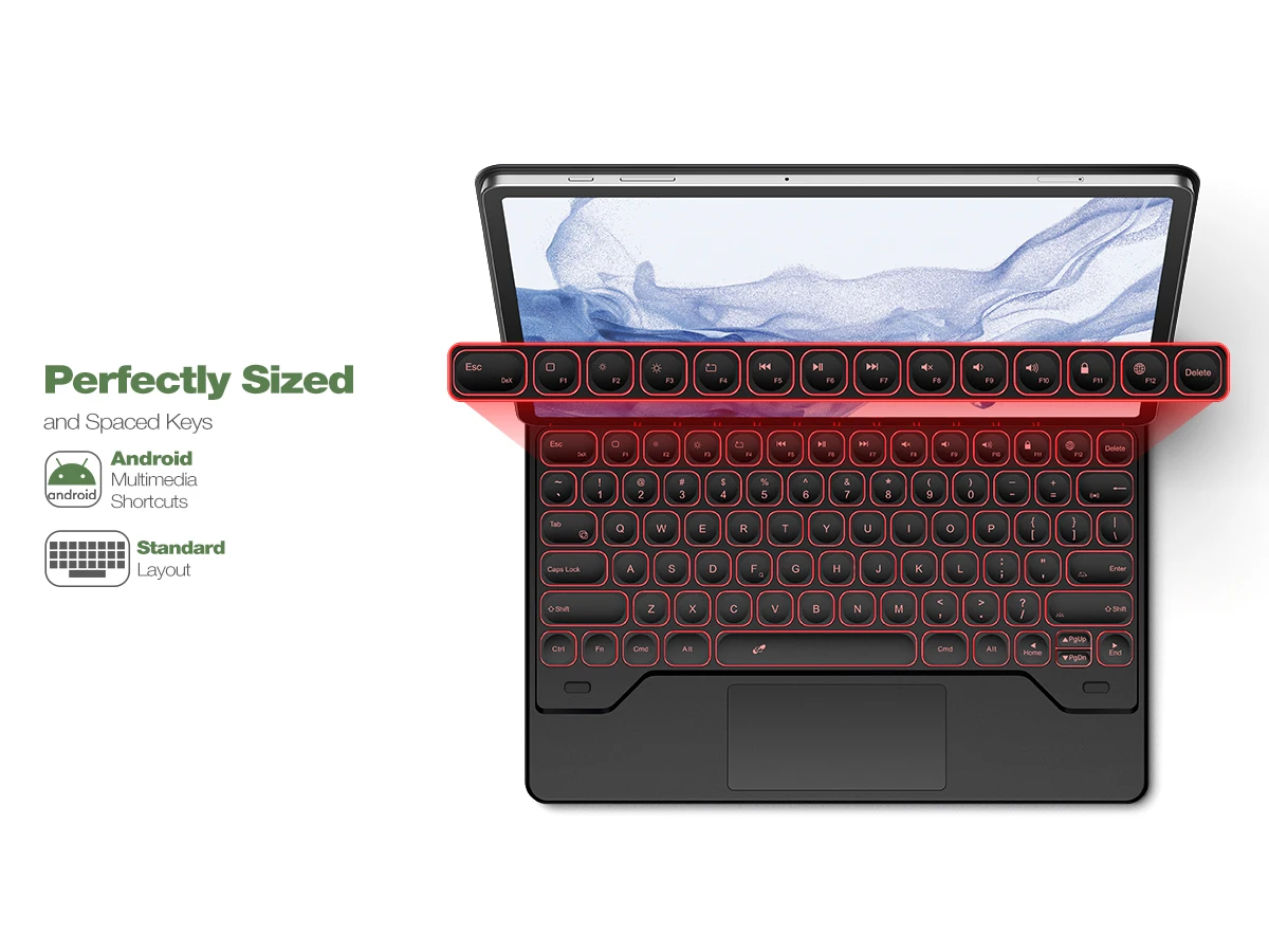 【HIGH-PRECISION MULTI-TOUCH TRACKPAD】Revolutionize your tablet experience with our keyboard case featuring an ultra-precise and dependable smart trackpad. Seamlessly supporting multi-finger gestures, it opens up a new realm of control with actions like tap, pinch, scroll, swipe, and more. Navigate through tasks