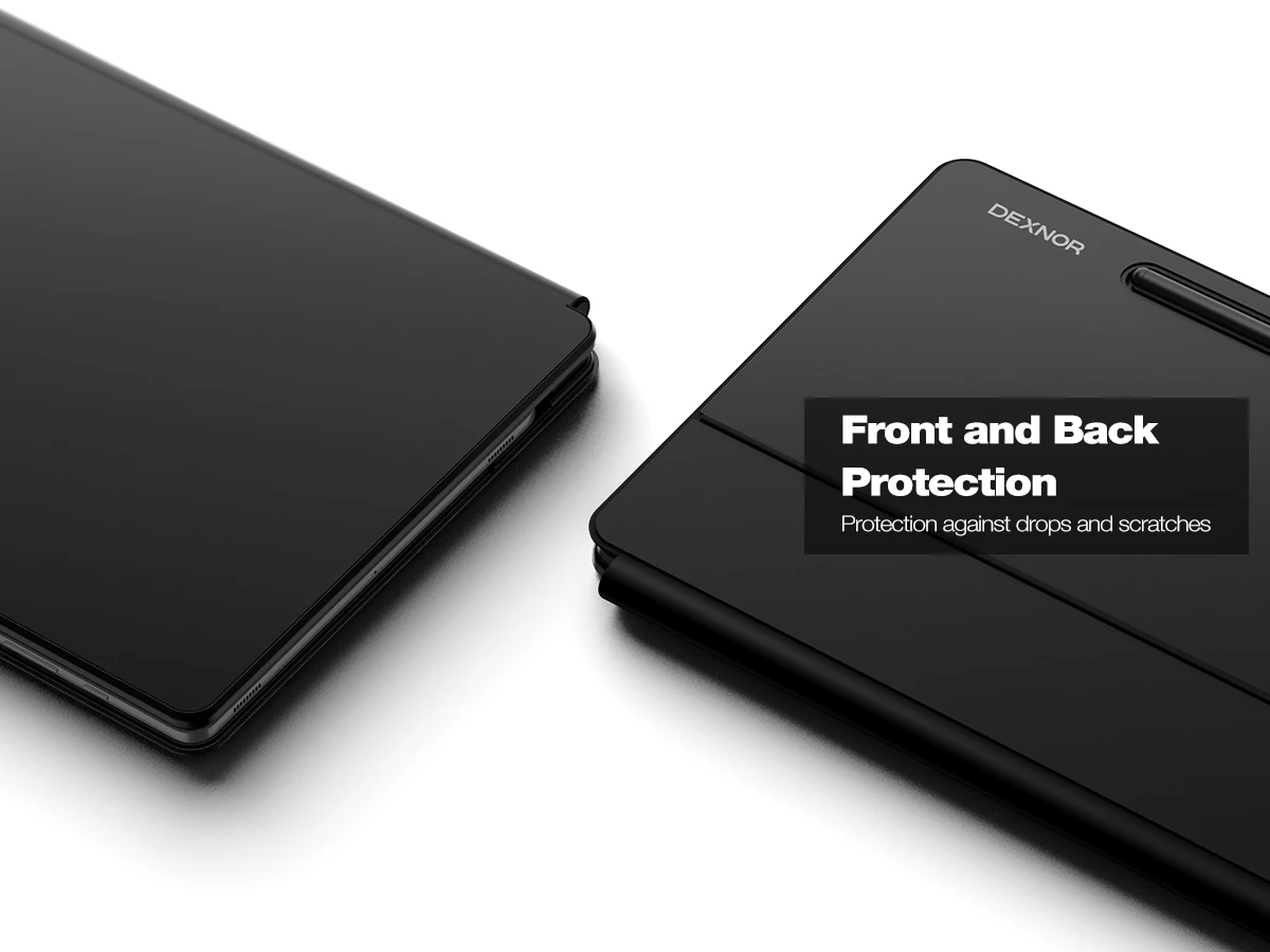 【S PEN HOLDERS】Keep your S Pen secure with two holders – a built-in magnetic holder in the keyboard for storage and a cut-out slot on the back cover for both charging and storage. Enjoy the convenience of quick access while preventing loss. The case folds into a slim folio for solid front and back protection, perfect for travel, business, or school.