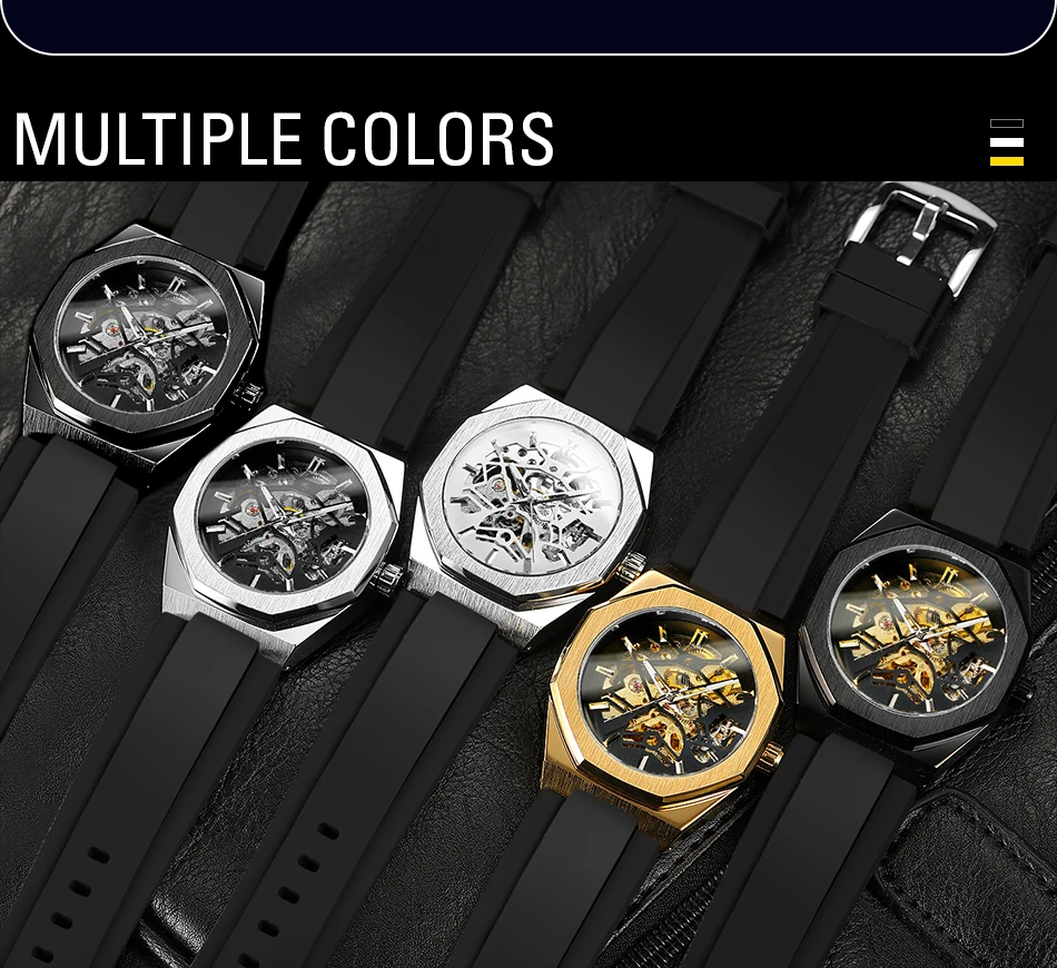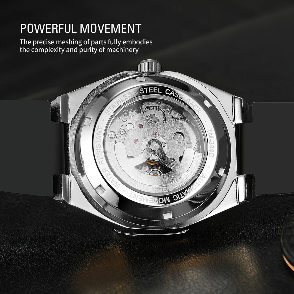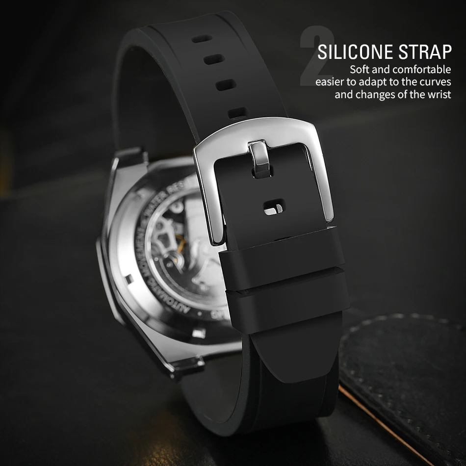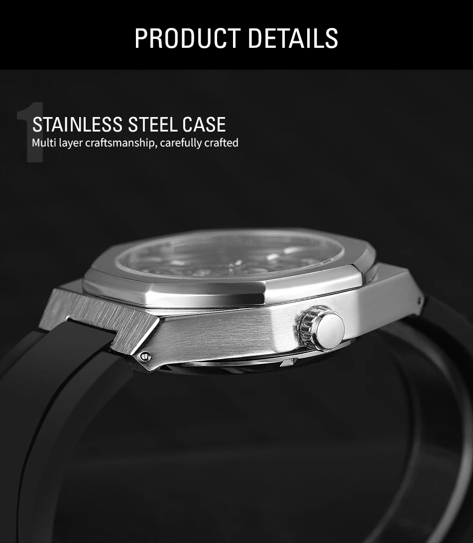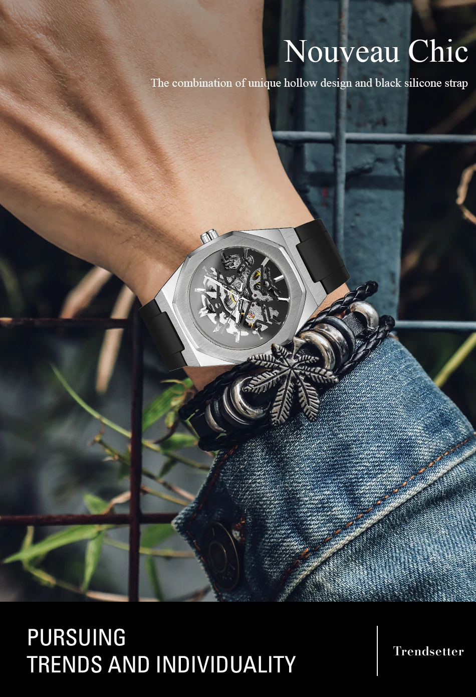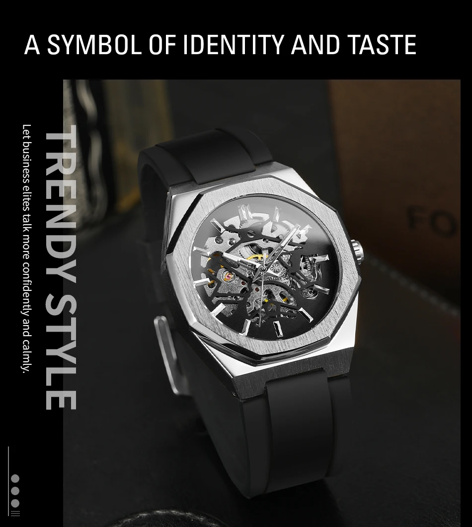 FORSINING Original Factory Octagon Silver Steel Skeleton Mechanical aaa Watch Automatic Movement Clock Rubber Band Luxury Brands