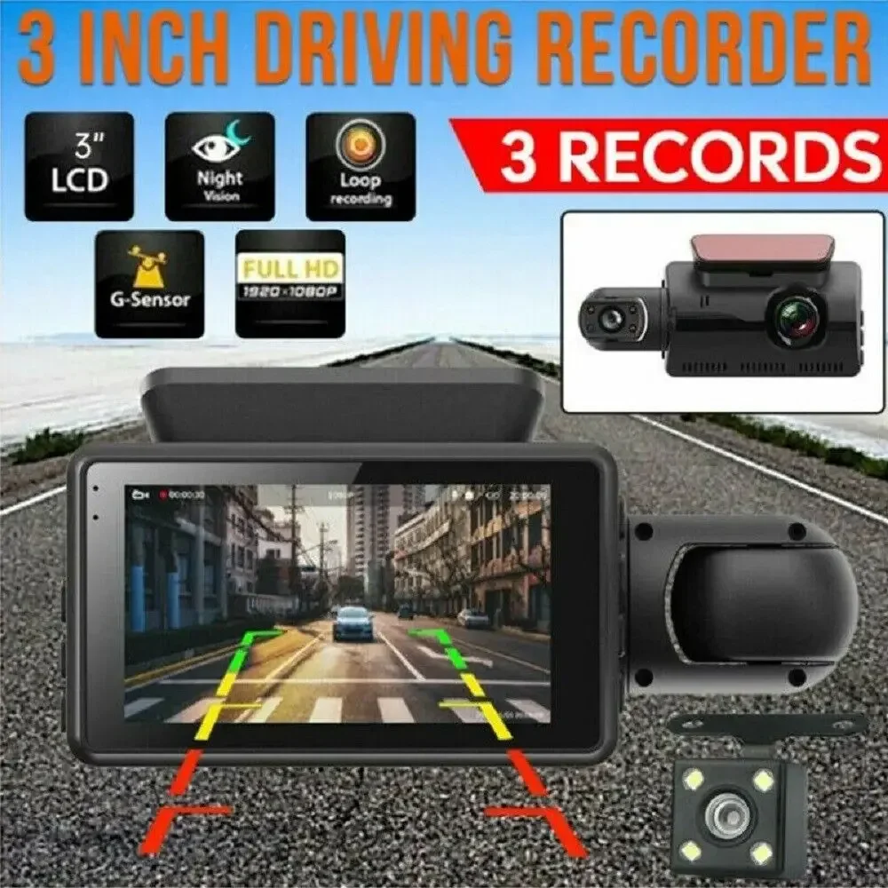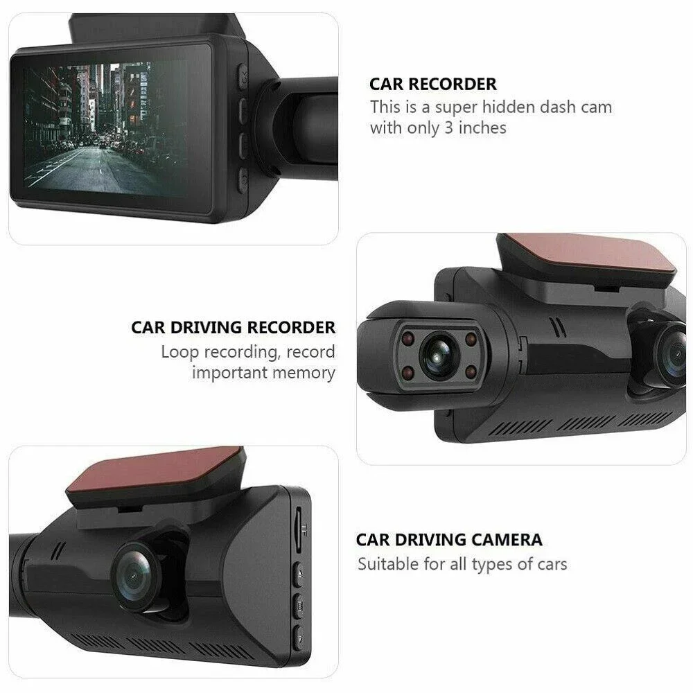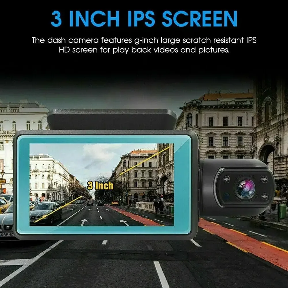 1FHD 1080P Dual Lens Dash Cam: With a 3-inch LCD screen, the dual-lens dashcam simultaneously records front at 1920x1080P with 30fps and inside at 1080x720P with 25fps, which provides sharp high-quality videos/images and powerful evidence in case of an accident. Perfect for Uber/Taxi/Rideshare drivers or people who need to record both scenery and happy time with your families.