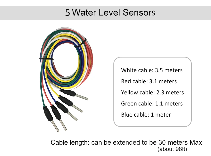 There are two types of liquid level sensors for option, fuel level float ball probes or water level probes.
