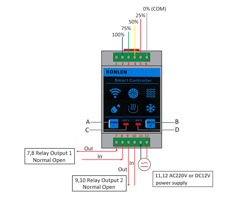 Normally Relay output 1(terminal 7.8) connects with water pumps, used for controlling water pump on/off.
