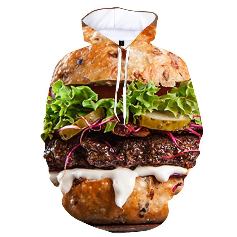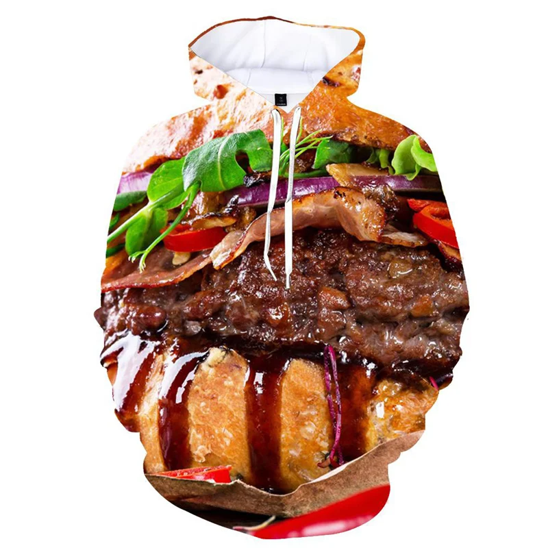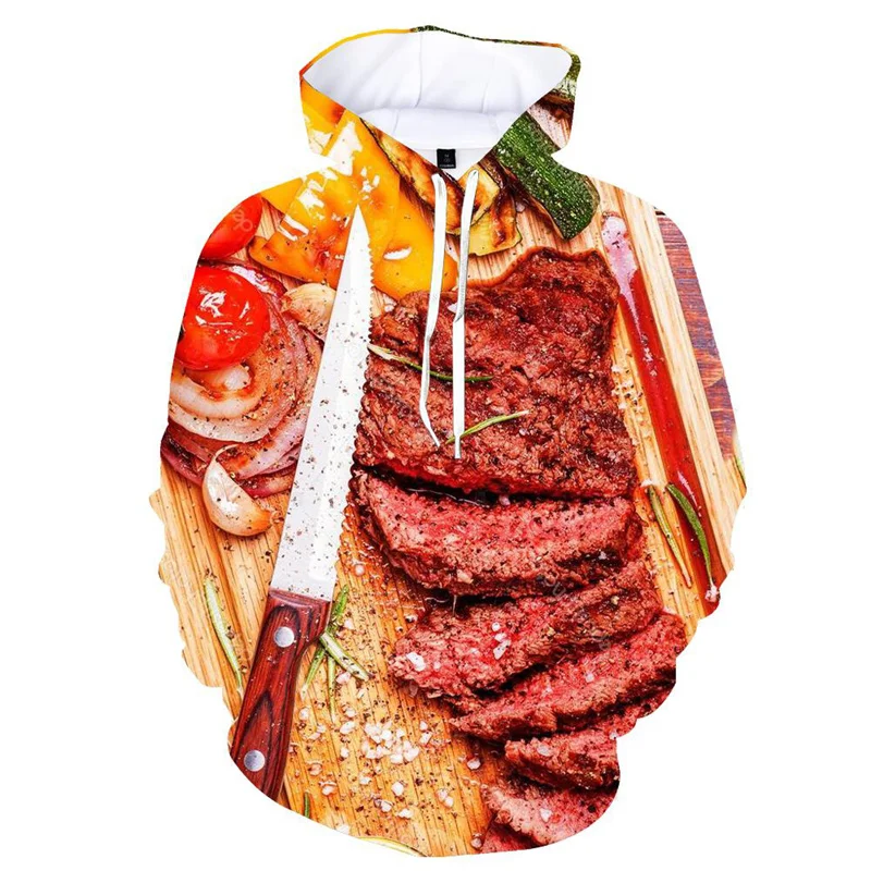 Funny 3D Print Hamburger Hoodie For Men Beef Steak Pizza Graphics Sweatshirts Men Women Cool Streetwear Hoodies Tops Clothes