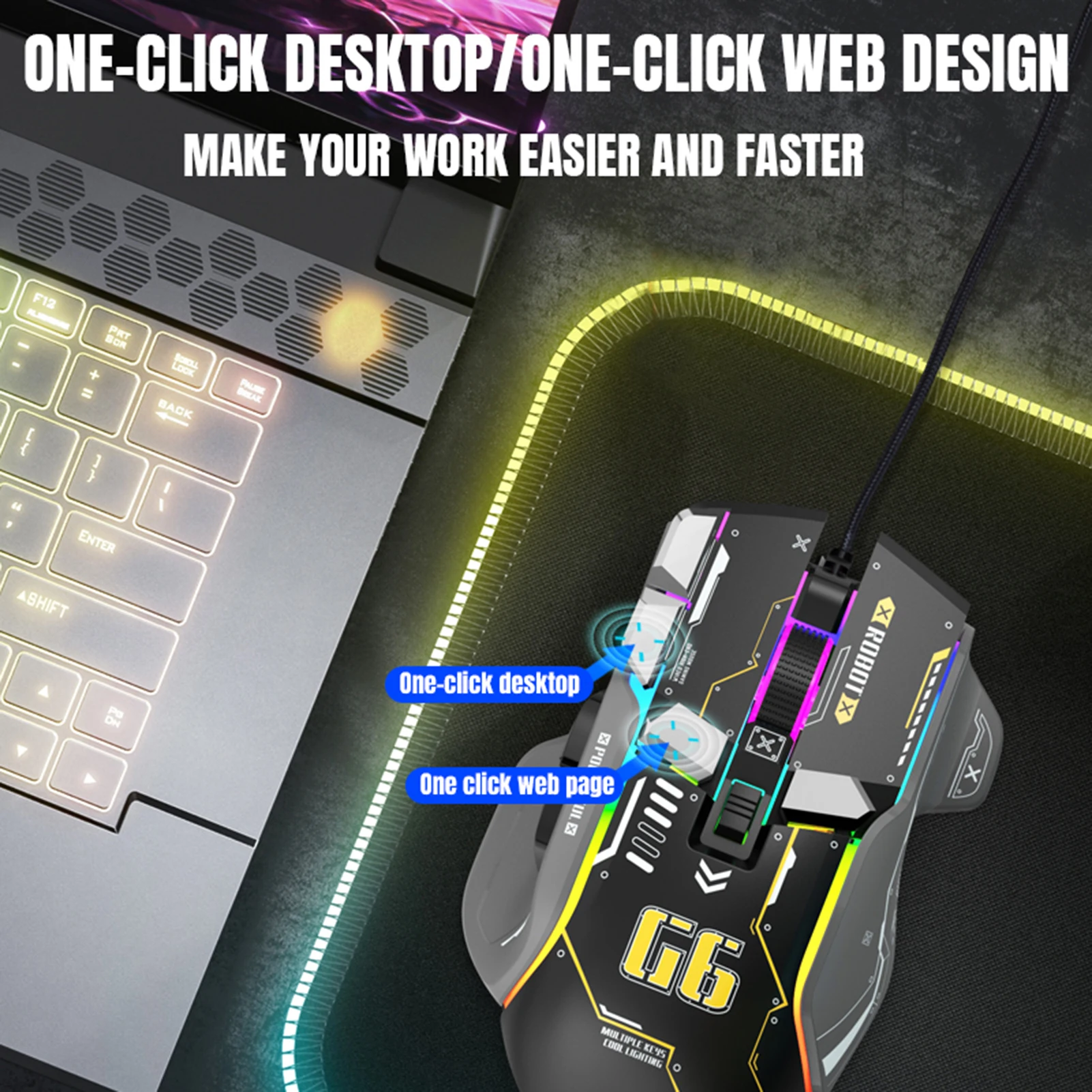 G6RGB 12-Key Mechanical Mouse Wired Gaming Mosue Ergonomic 10-key Macro Programmable 12800DPI 13 RGBLighting Modes Mouse