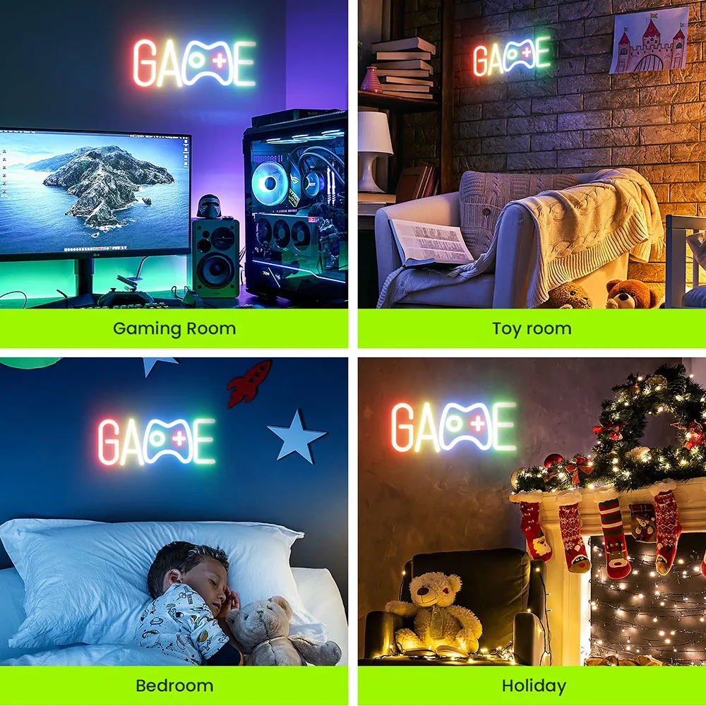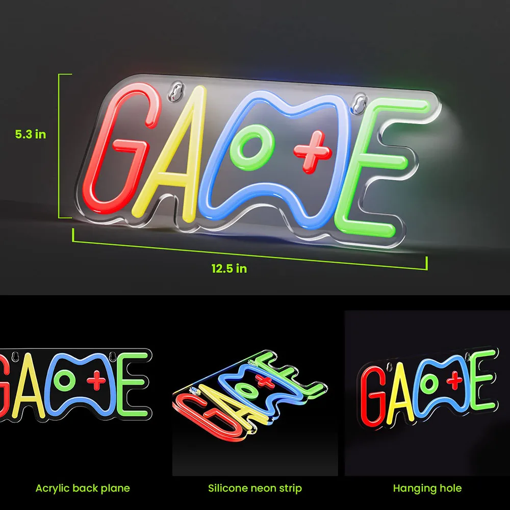 GAME Neon Sign Dimmable LED Neon Signs Wall Decor USB Powered Game Neon Lights LED Light Kids Gamer Gift For Birthday Christmas