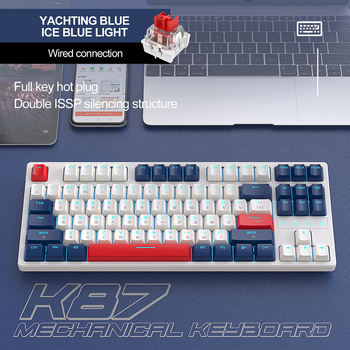 K87 Mechanical Keyboard RGB Backlight Silent Keyboard 87Keys Hot-Swap Keyboard Russian USB Port for Computer Laptop PC