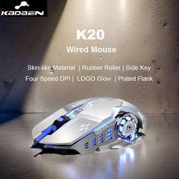 Kadaen K20 Wired Gaming Mouse Four-Speed Adjustable PDI Up to 2400 Rainbow Breathing Backlight Ambient Microswitch