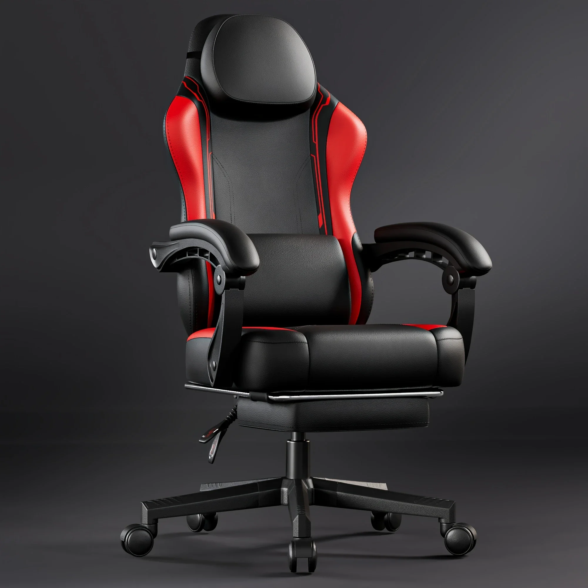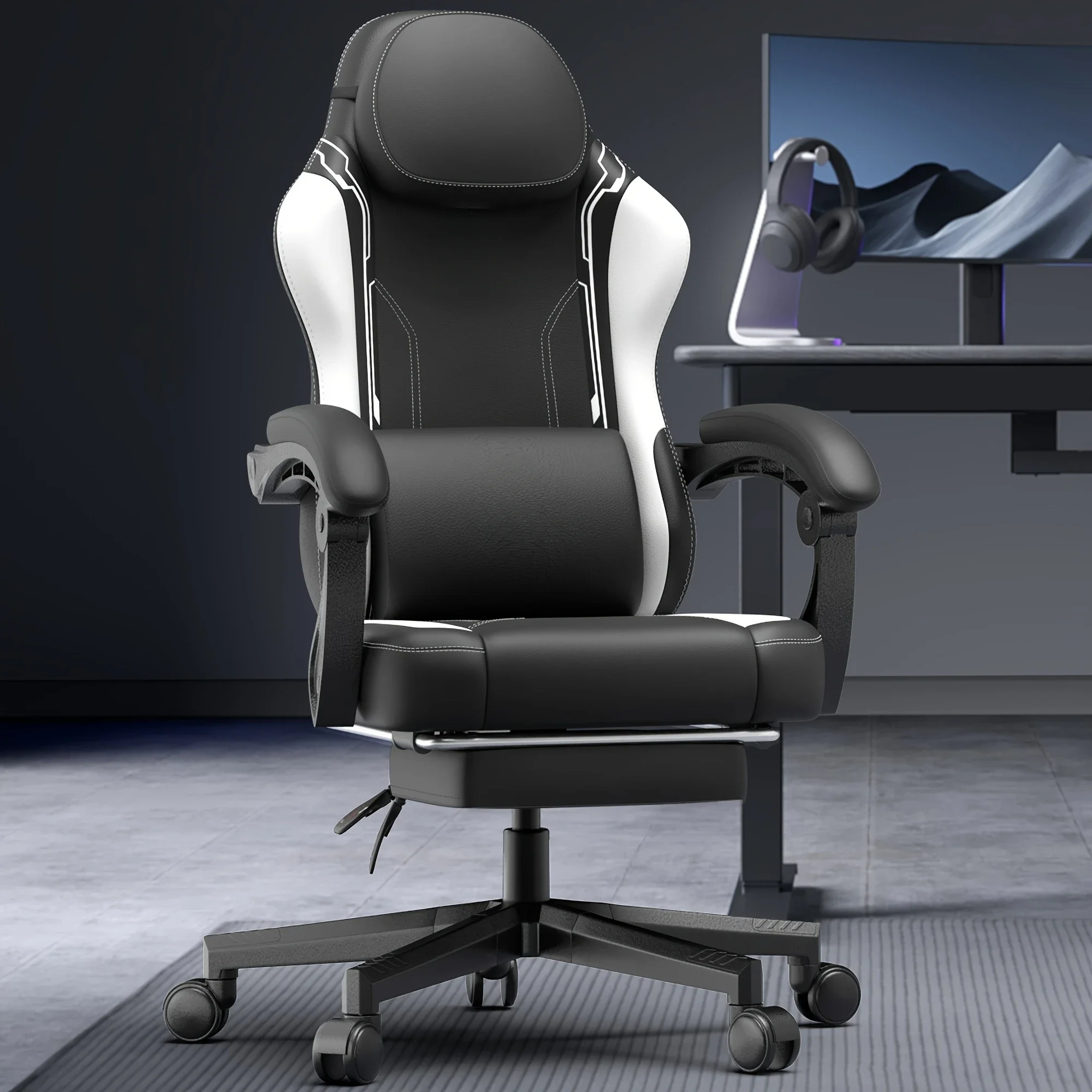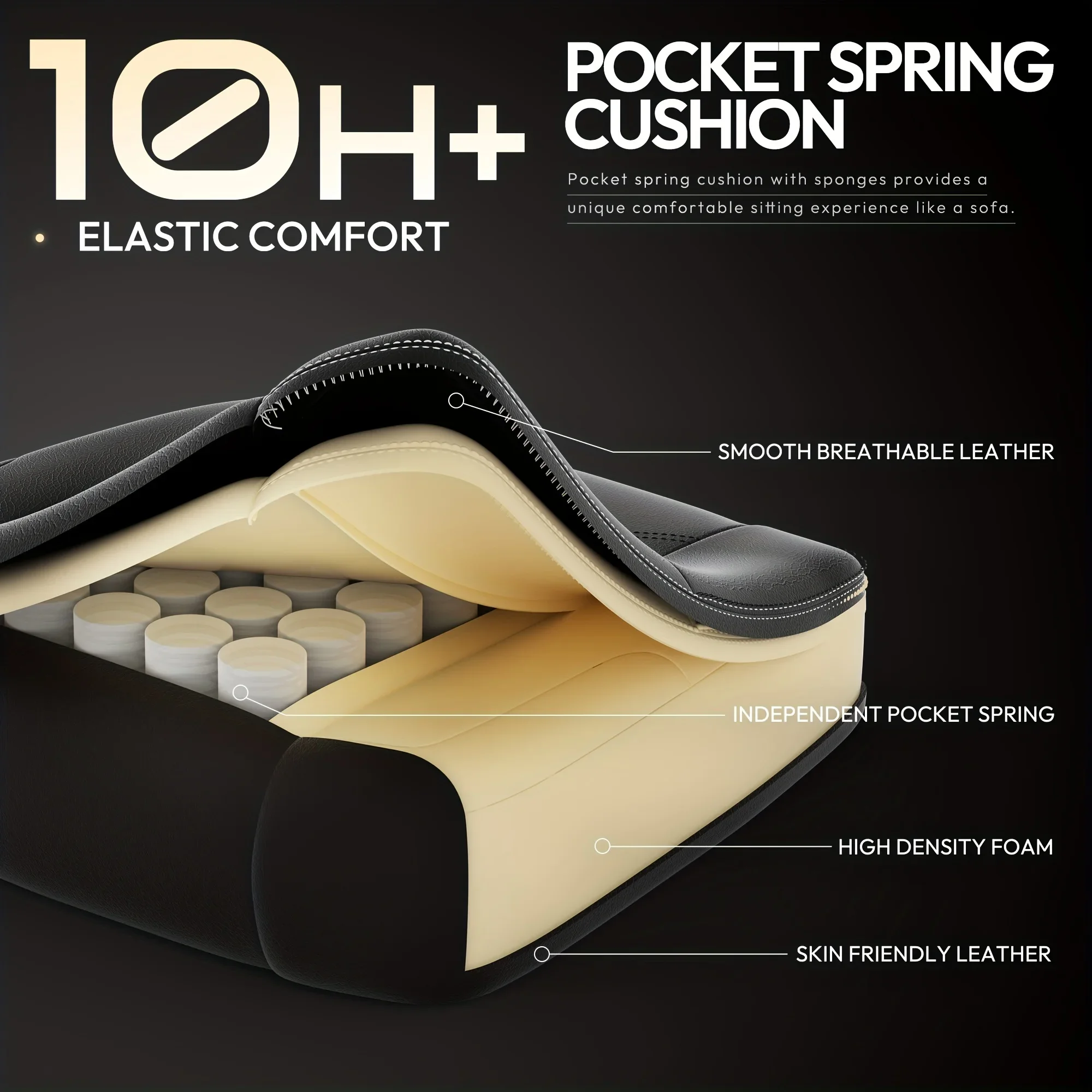 Gaming Chair – Ergonomic High Back Leather Computer Chair with Massage Lumbar Support, Footrest, and Pocket Spring Cushion