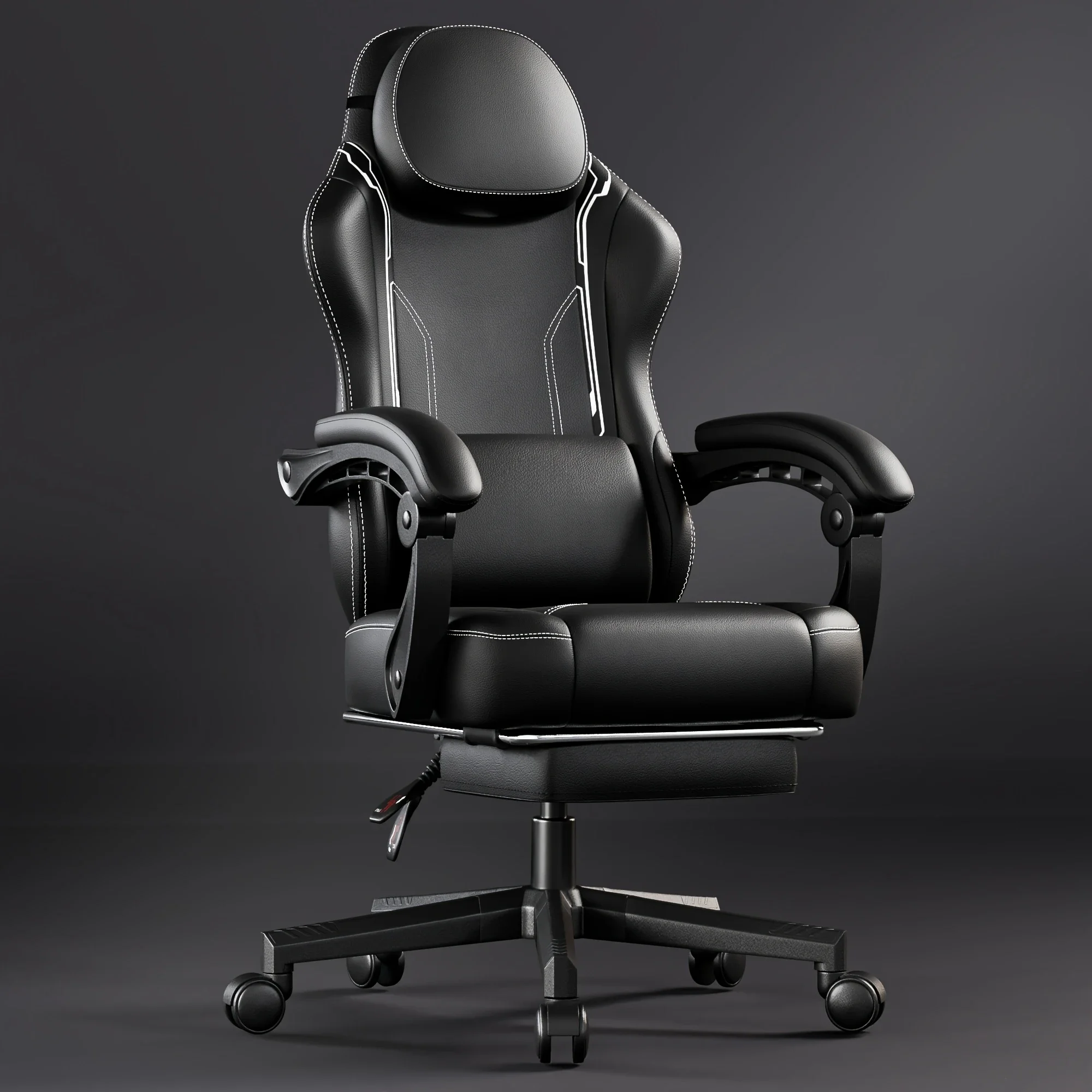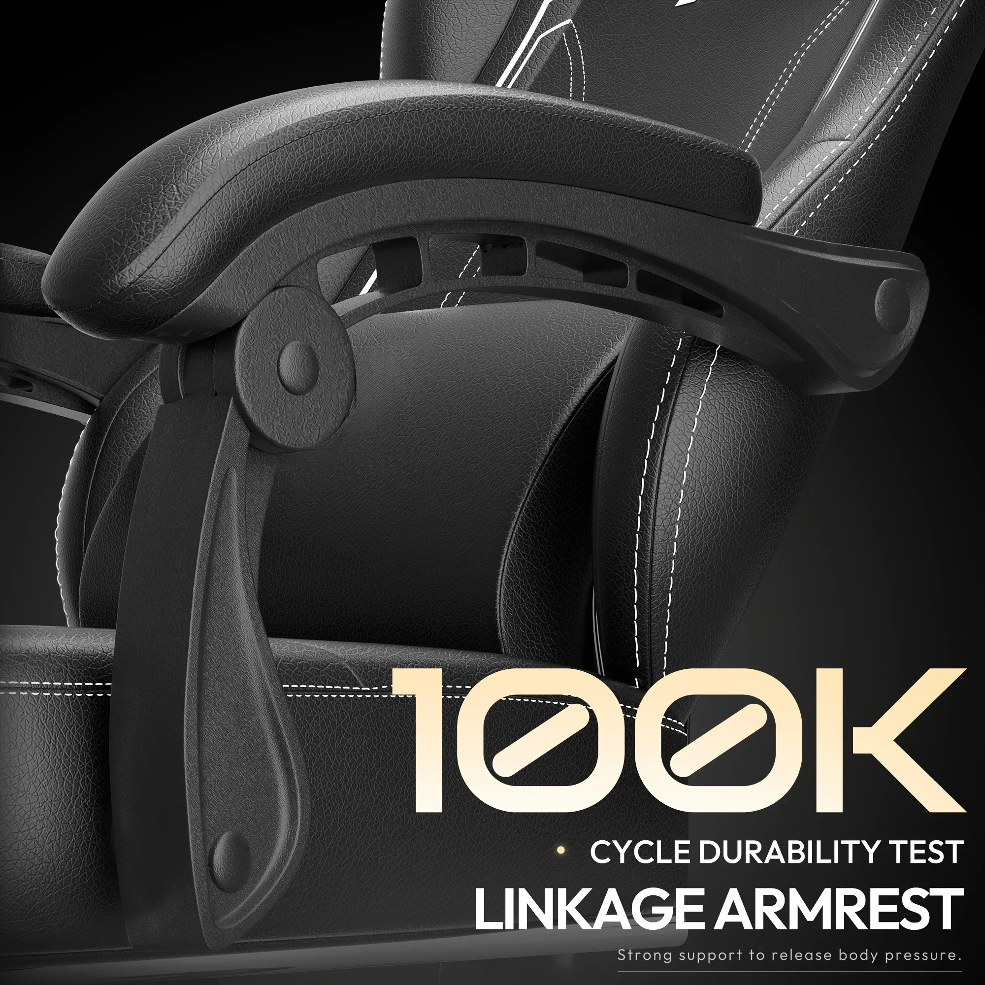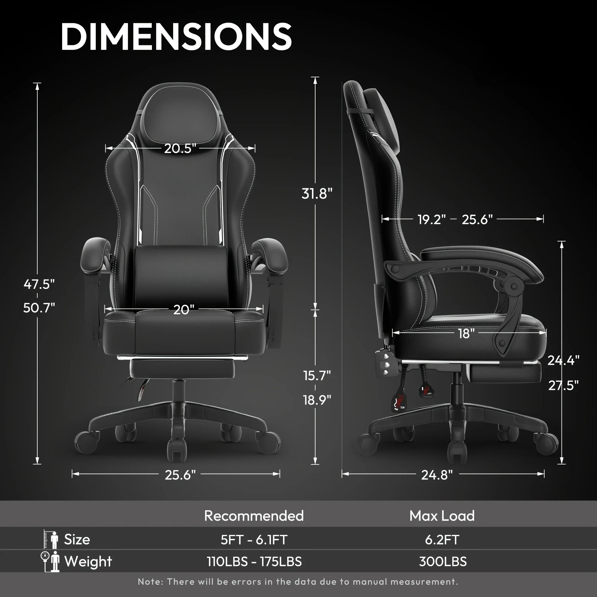 Gaming Chair – Ergonomic High Back Leather Computer Chair with Massage Lumbar Support, Footrest, and Pocket Spring Cushion