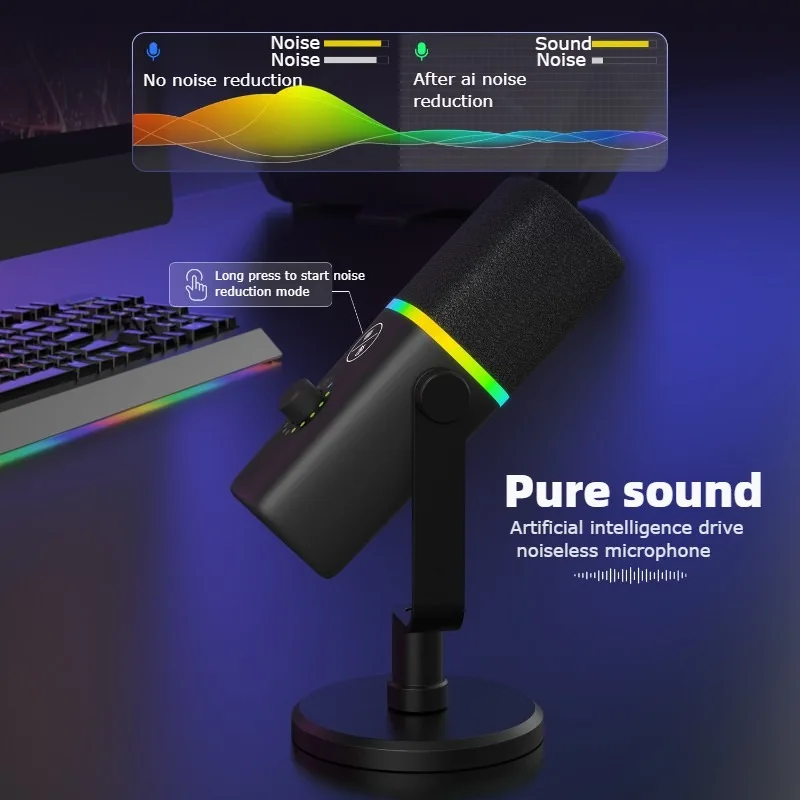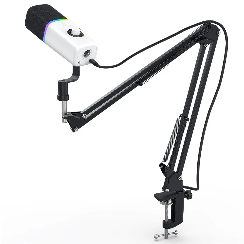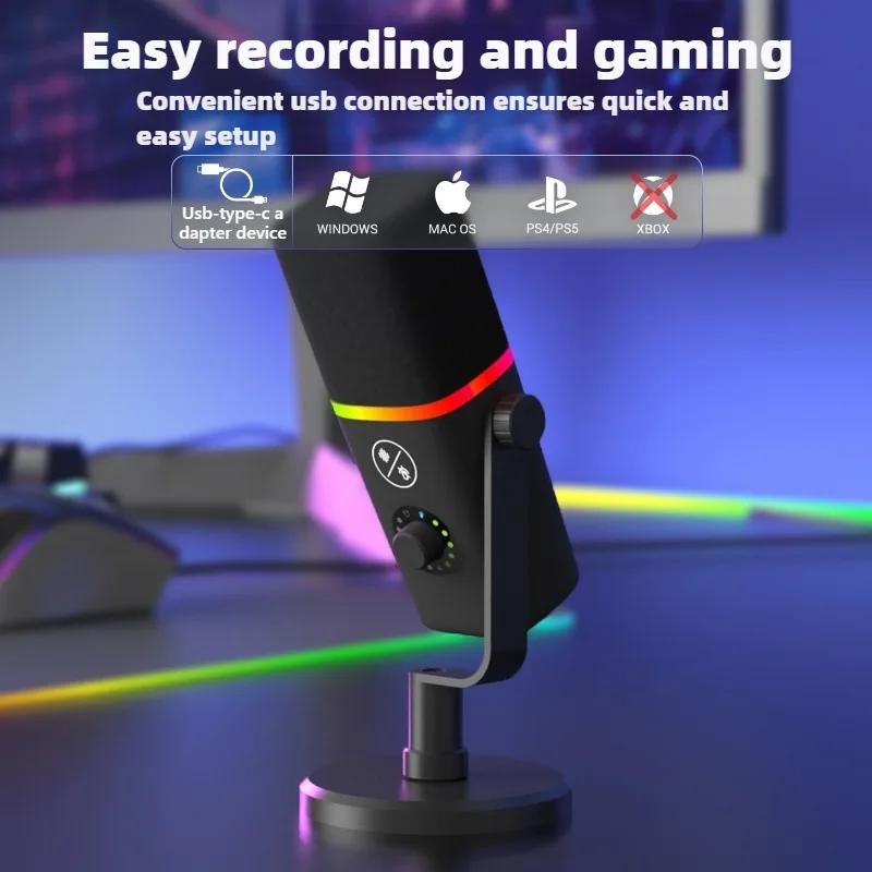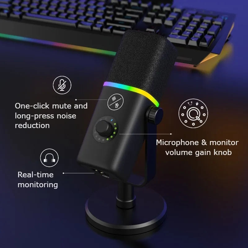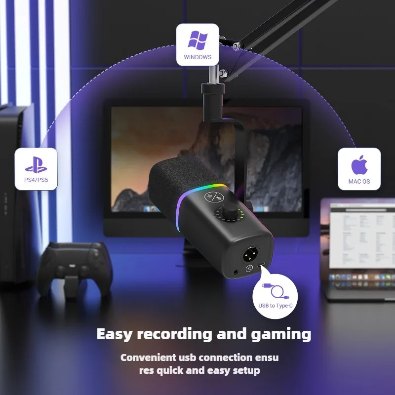 Gaming USB Microphone,Noise Cancellation Condenser mic with Mute,Gain,Monitoring, Boom Arm for Streaming,Podcast,PC,Computer,PS4