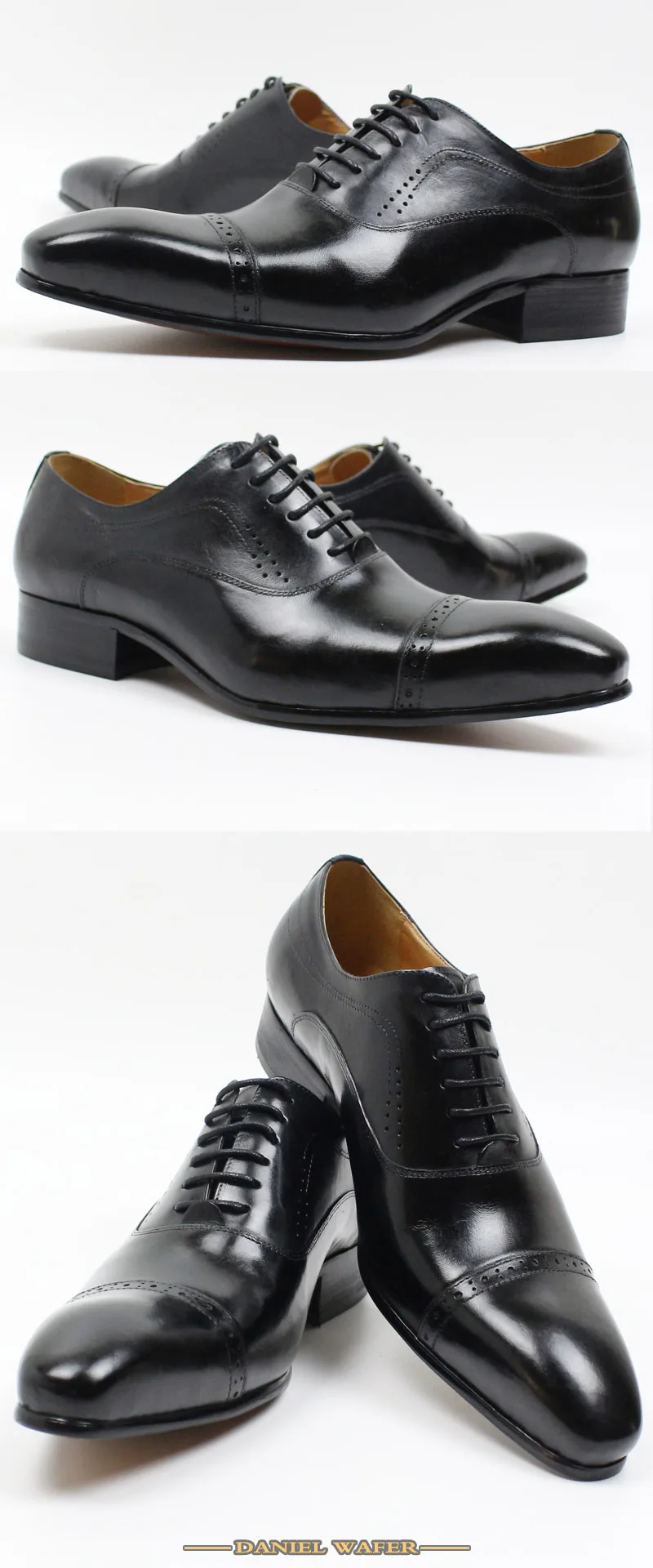Genuine Leather Oxford Dress Shoes Men Lace Up Cap Toe Office Wedding Shoes Black Brown Brogue Pointed Oxfords Formal Shoes Men