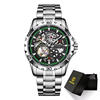 GLENAW Steampunk Skeleton Men’s Watch Ring Luxury Automatic Mechanical Watches Luminous waterproof Stainless Steel Strap Watch