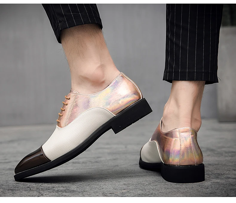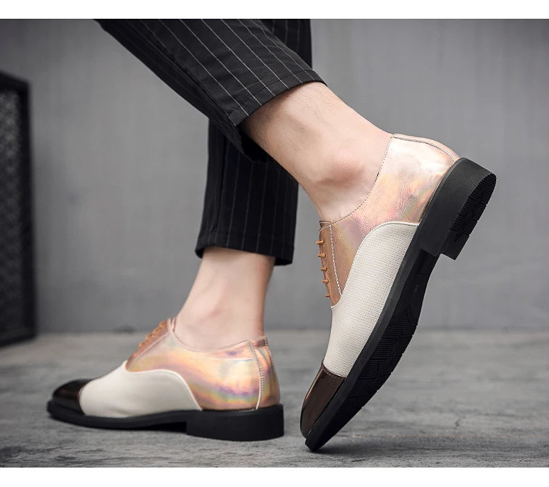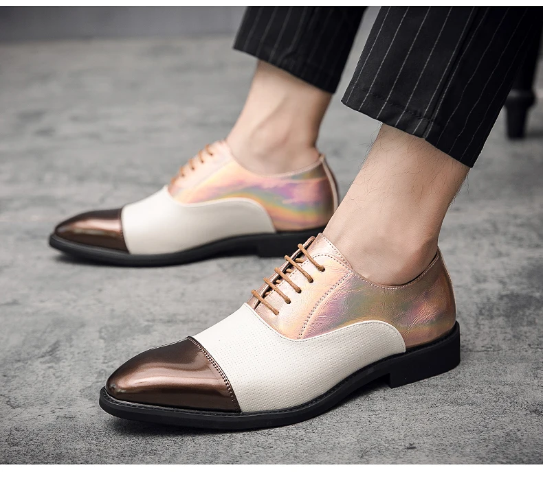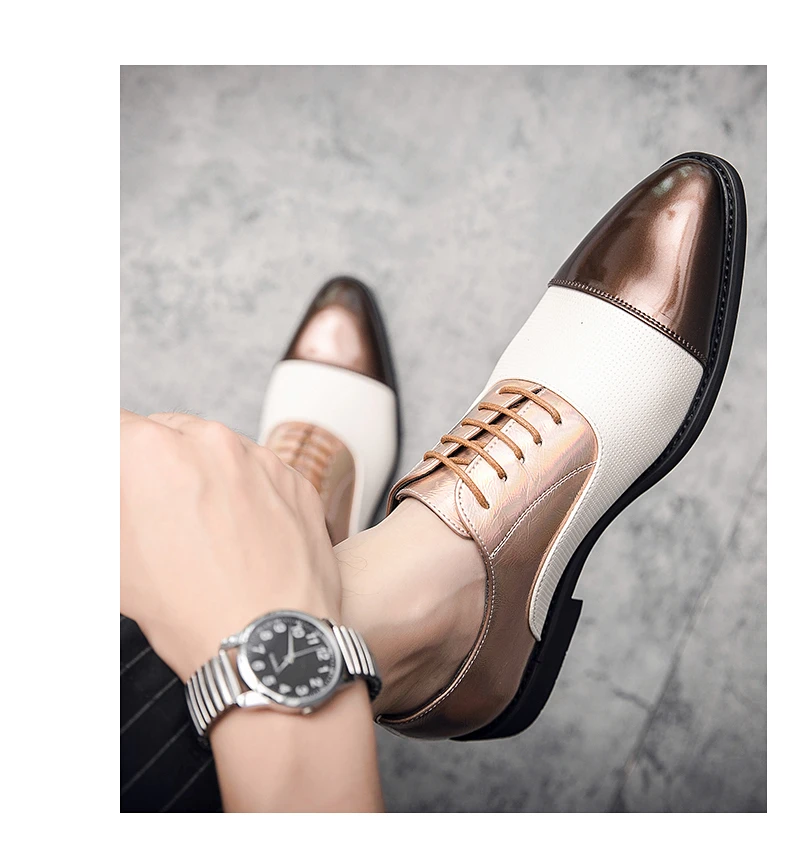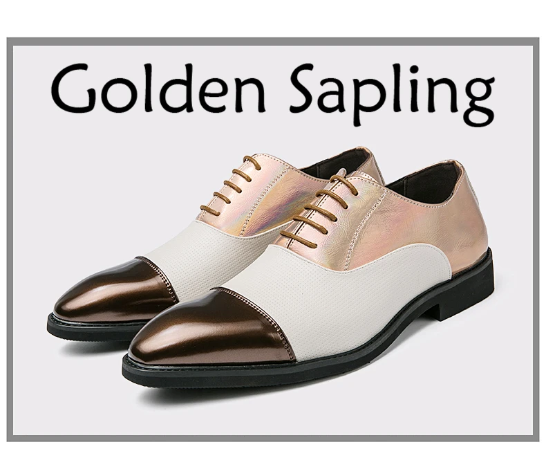 Golden Sapling Casual Business Shoes Men Patchwork Leather Oxfords Fashion Dress Flats Leisure Office Men’s Formal Wedding Shoes