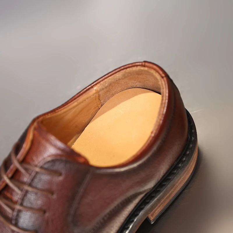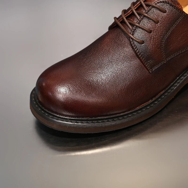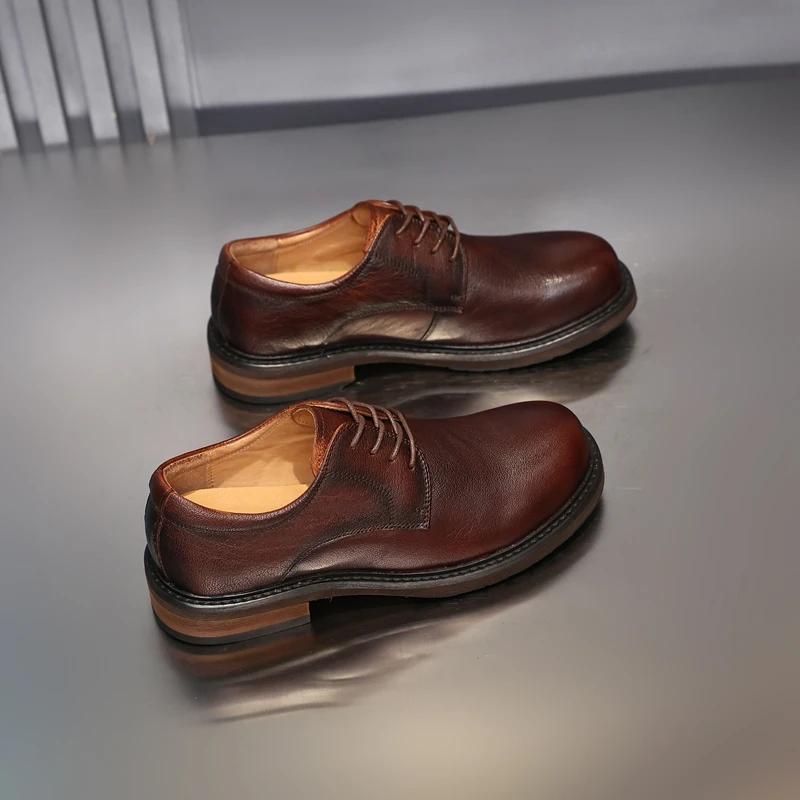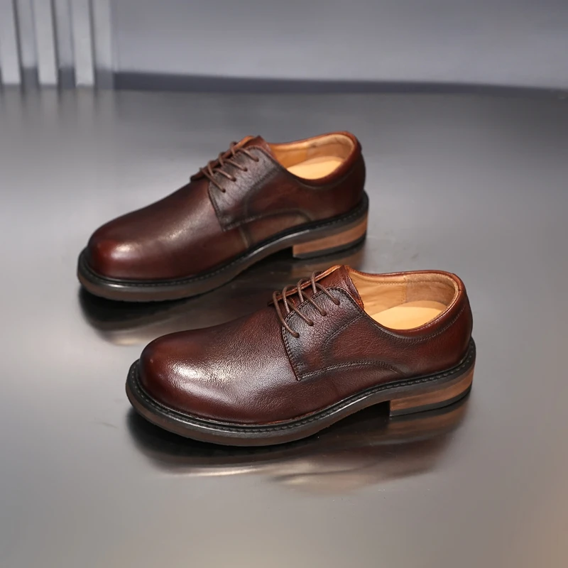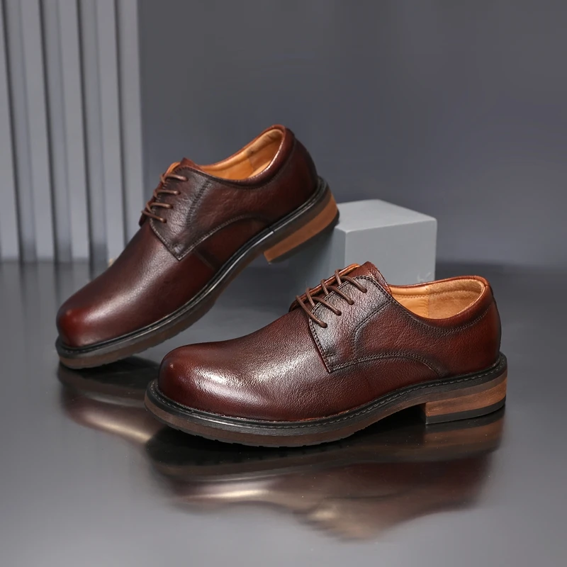 Golden Sapling Newest Brown Men’s Dress Shoes Fashion Wide Toe Cowhide Oxfords Genuine Leather Male Party Working Formal Shoes