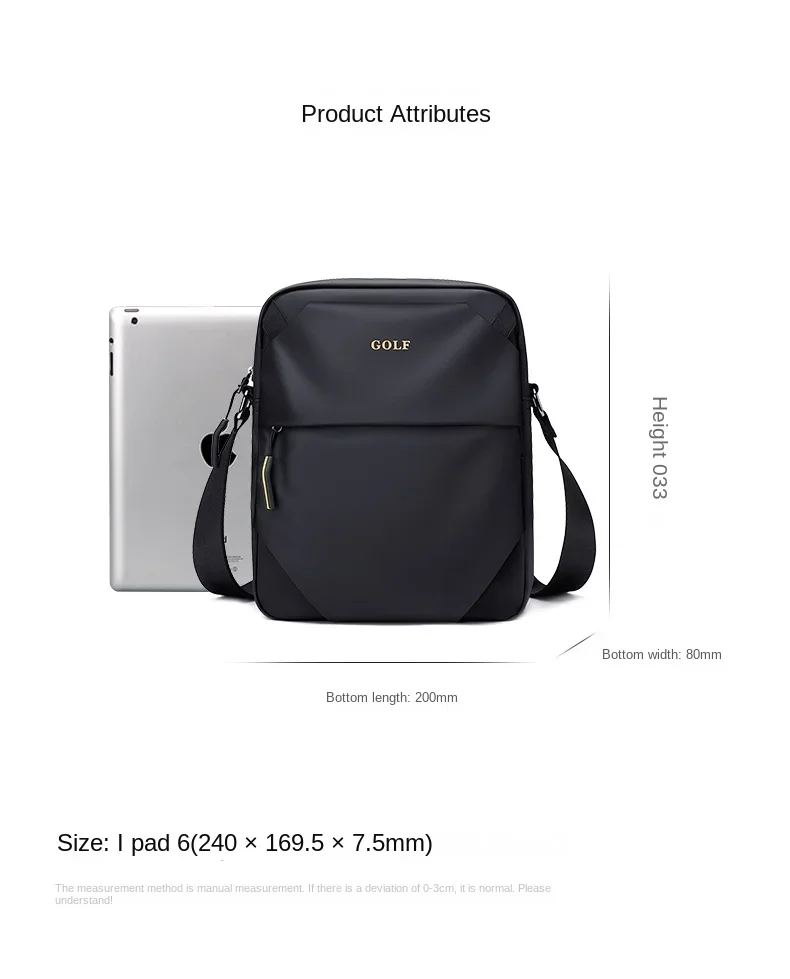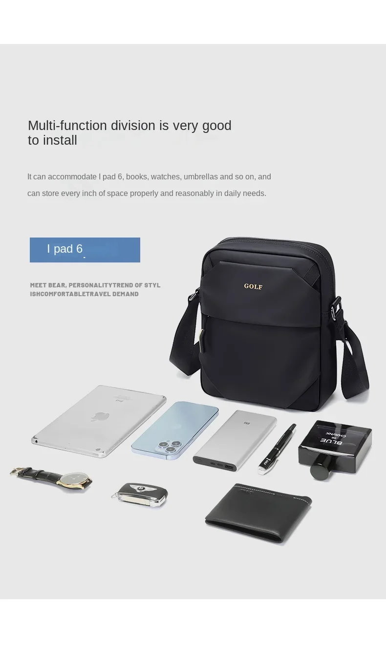 GOLF Casual Minimalist Shoulder Bag Men’s Crossbody Bag Cell Phone Mini Sling Cross Bag Nylon Square Messenger Bag Male Supplies