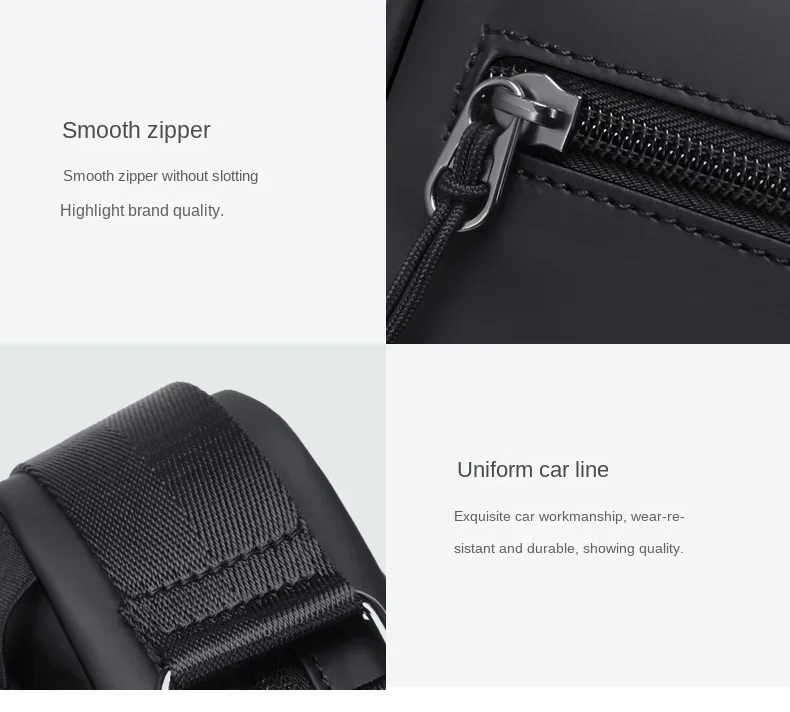 External: 1 front side pocket, 1 front zipper compartment, 1 rear zipper compartment.