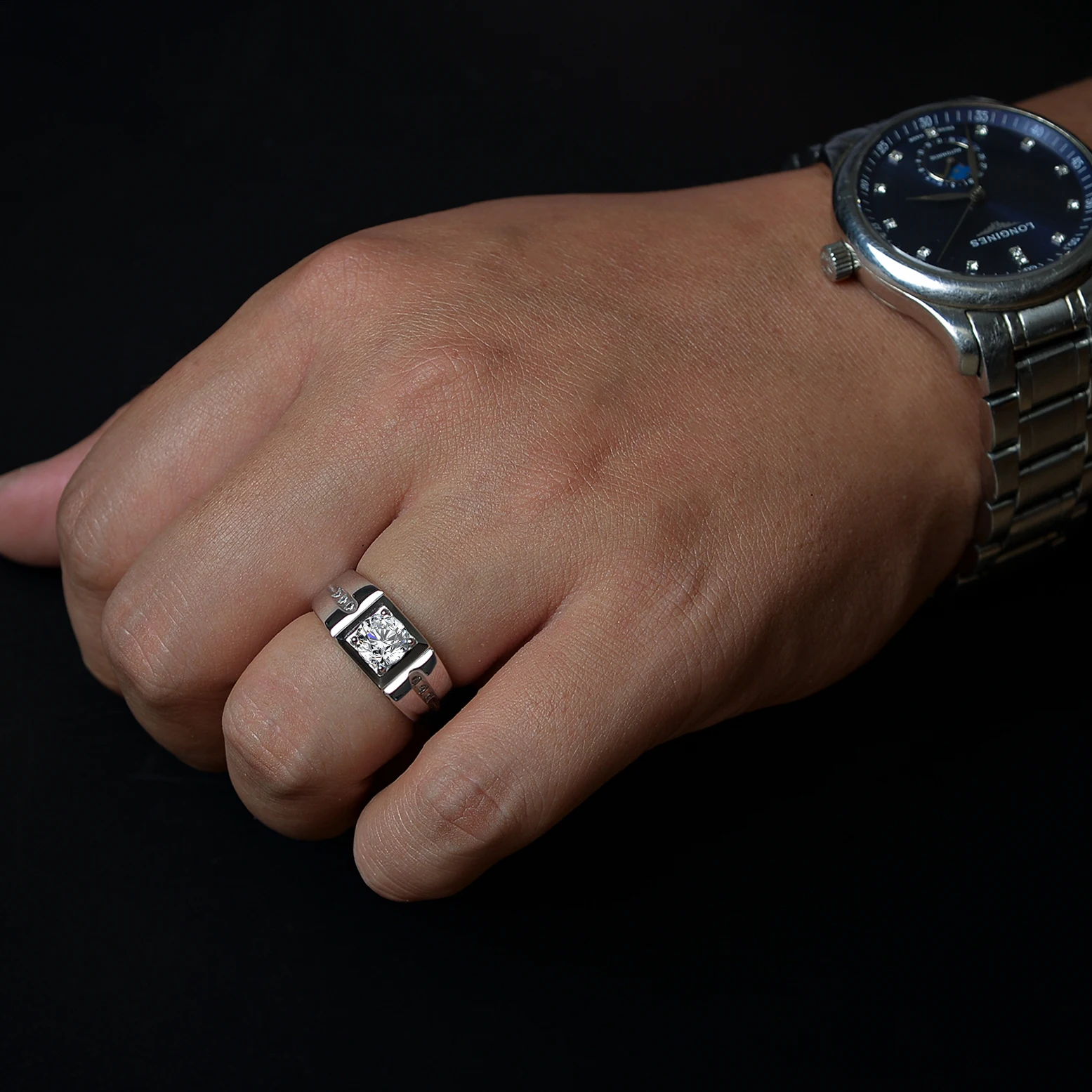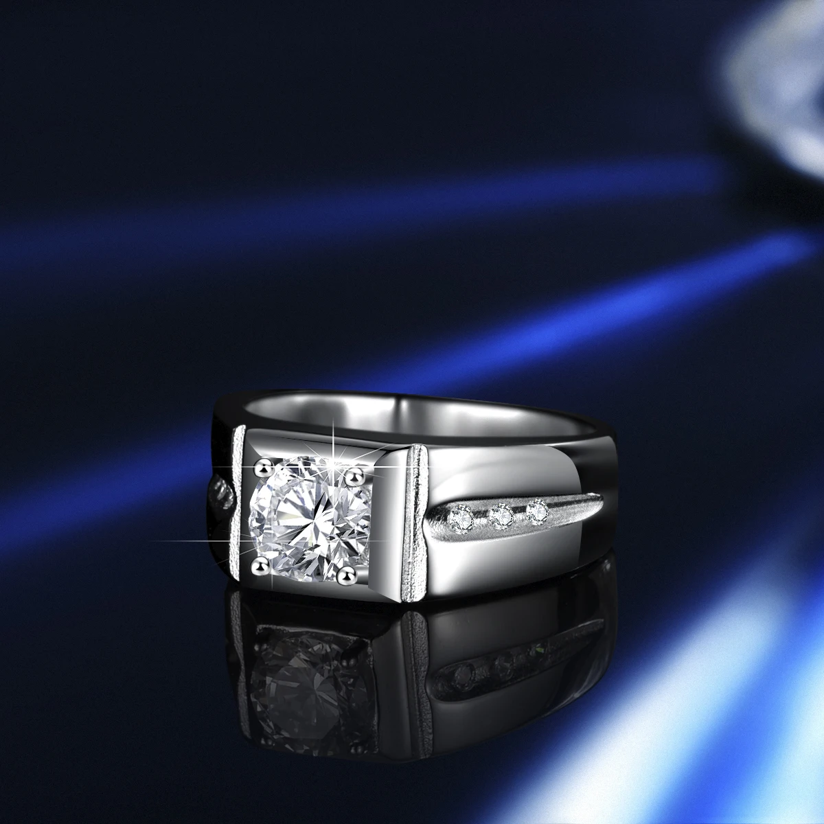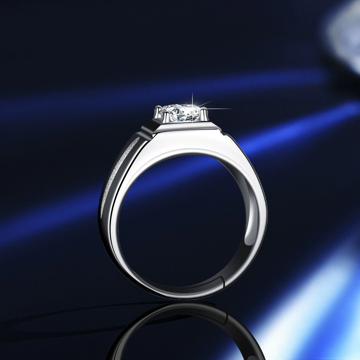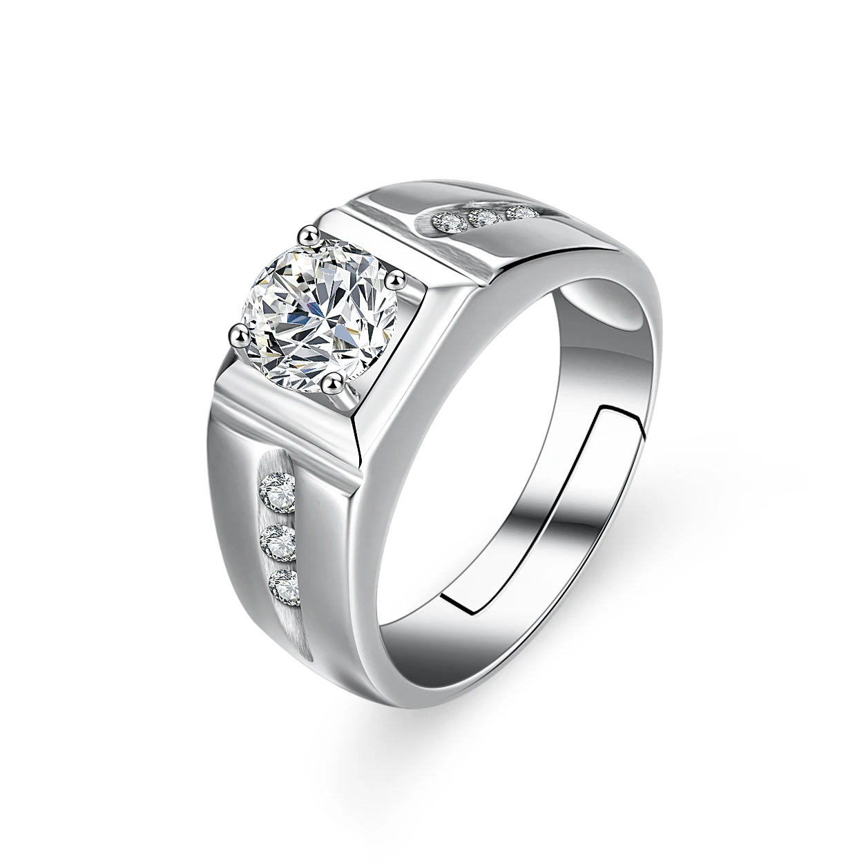 GRA D 1.00 ct Mozambican diamond carbonaceous silica one carat sterling silver ring for men with simple adjustable ring