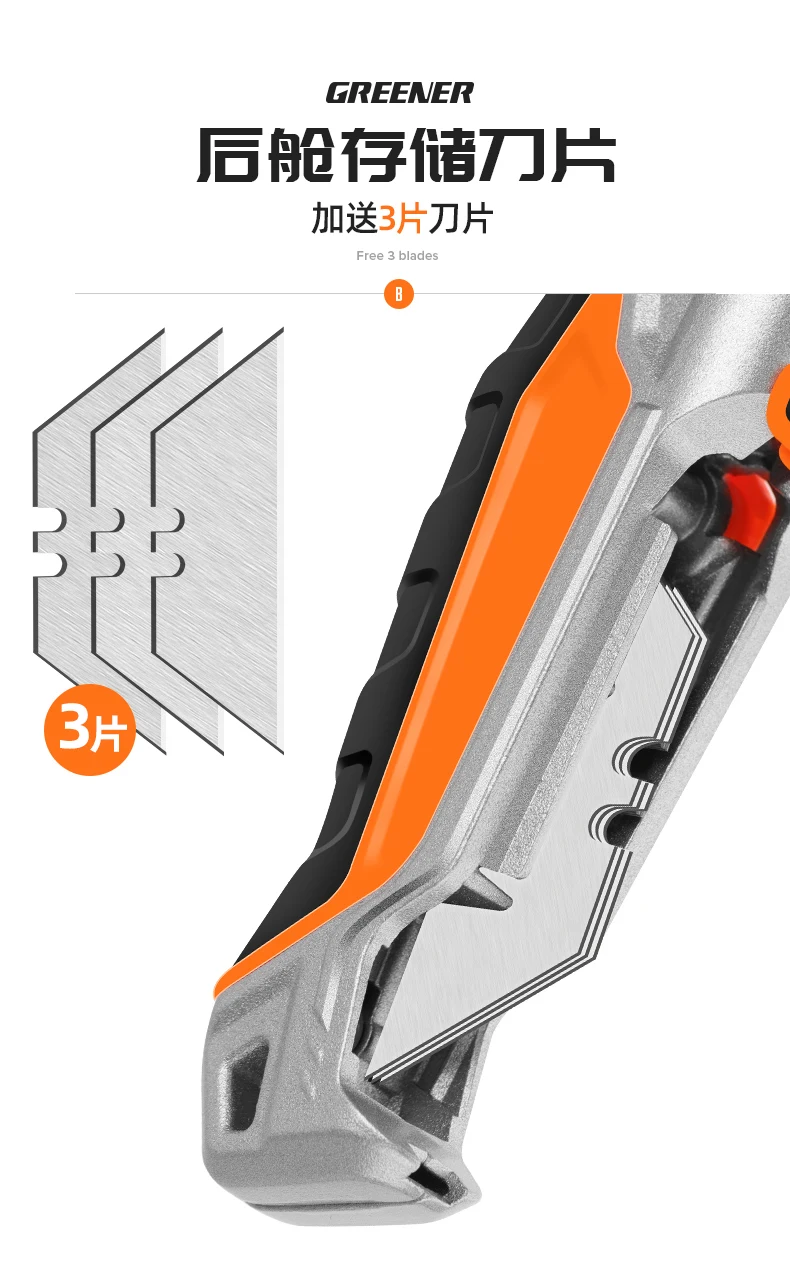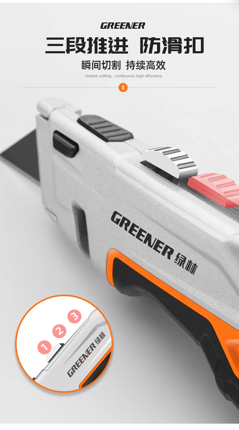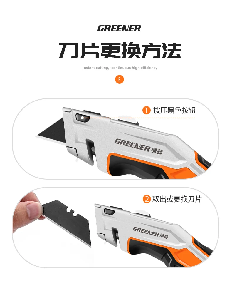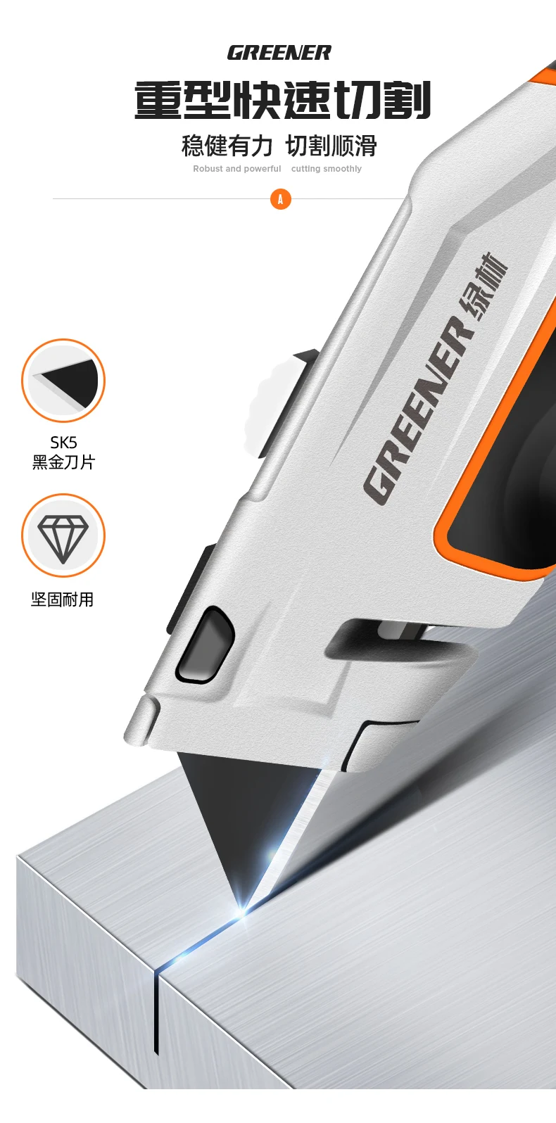 Greener Retractable Folding Utility Knife, Heavy Duty Metal Zinc Alloy Box Cutter,Quick Change Blade Razor Knife Cardboard