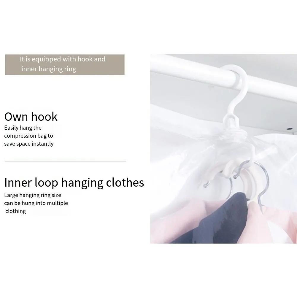 5. Note on Hook Design: Please be aware that the hook styles inside our seal wardrobe compressed bag are random, with both horizontal and vertical options. This flexibility ensures that regardless of the hook style, you’ll be able to efficiently utilize your space and keep your clothes organized and compressed.