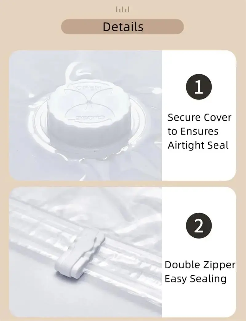 • The hanging design of the vacuum storage bag can save space, protect clothing after sealing, and prevent moisture, especially in humid areas or seasons, the effect is significant.