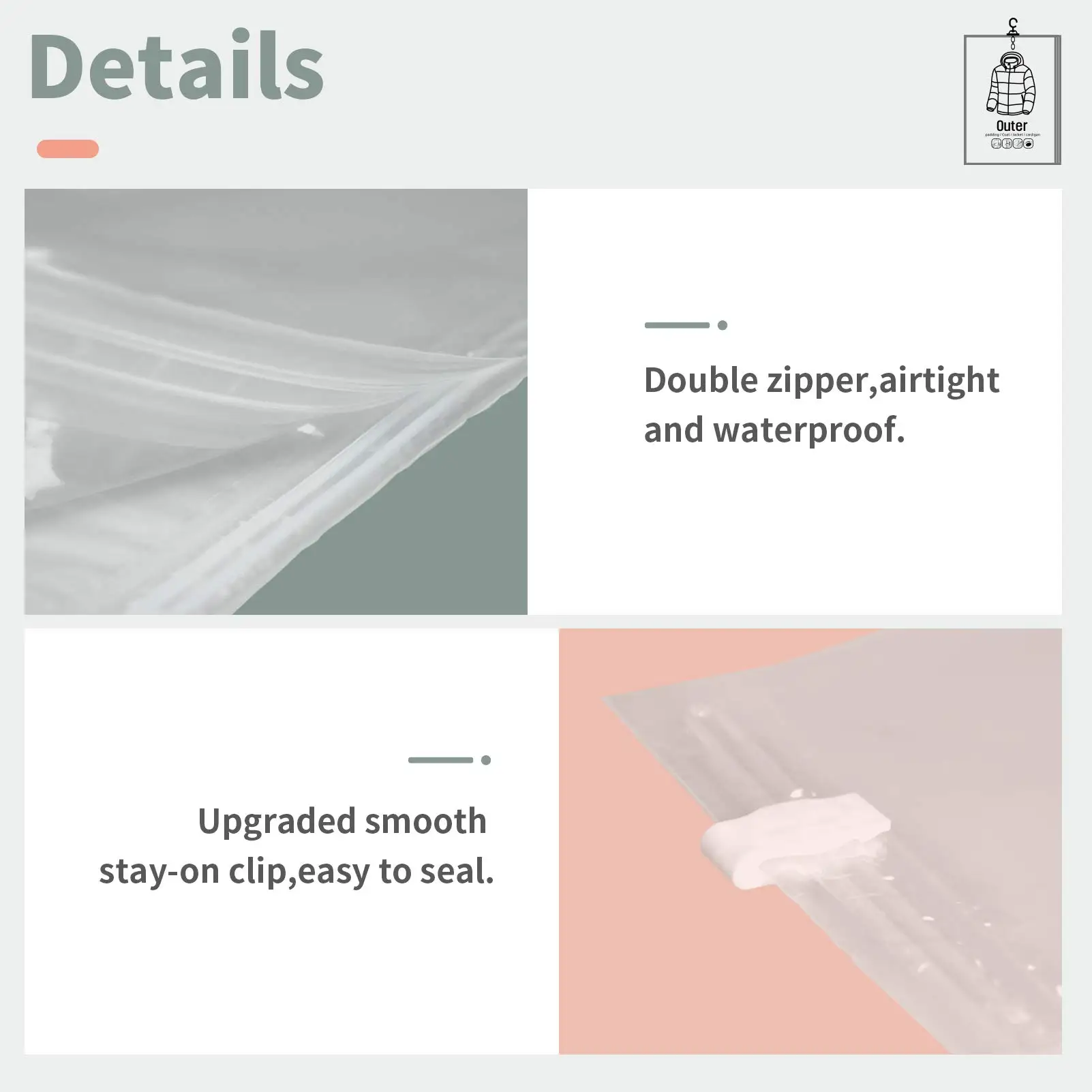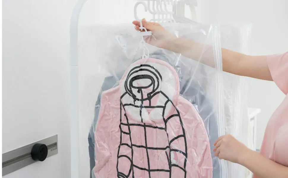 2.The hanging design of the vacuum storage bag can save space, protect clothing after sealing, and prevent moisture, especially in humid areas or seasons, the effect is significant.