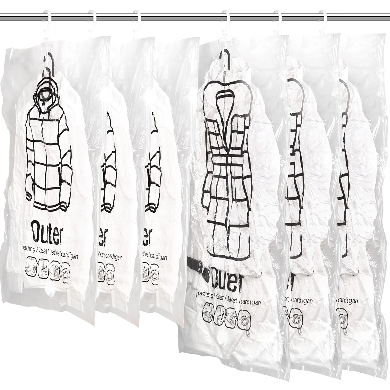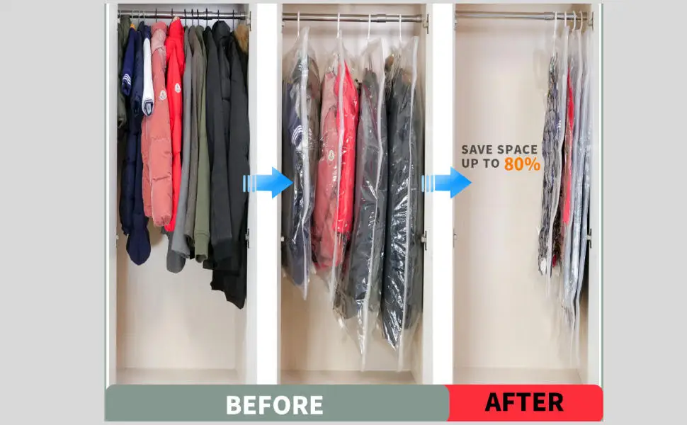 Hanging Vacuum Storage Bags for Coats Closet Organizer Vacuum Sealer Bags,for Garment, Clothing, Dress, Suit, Long Coat, Jacket