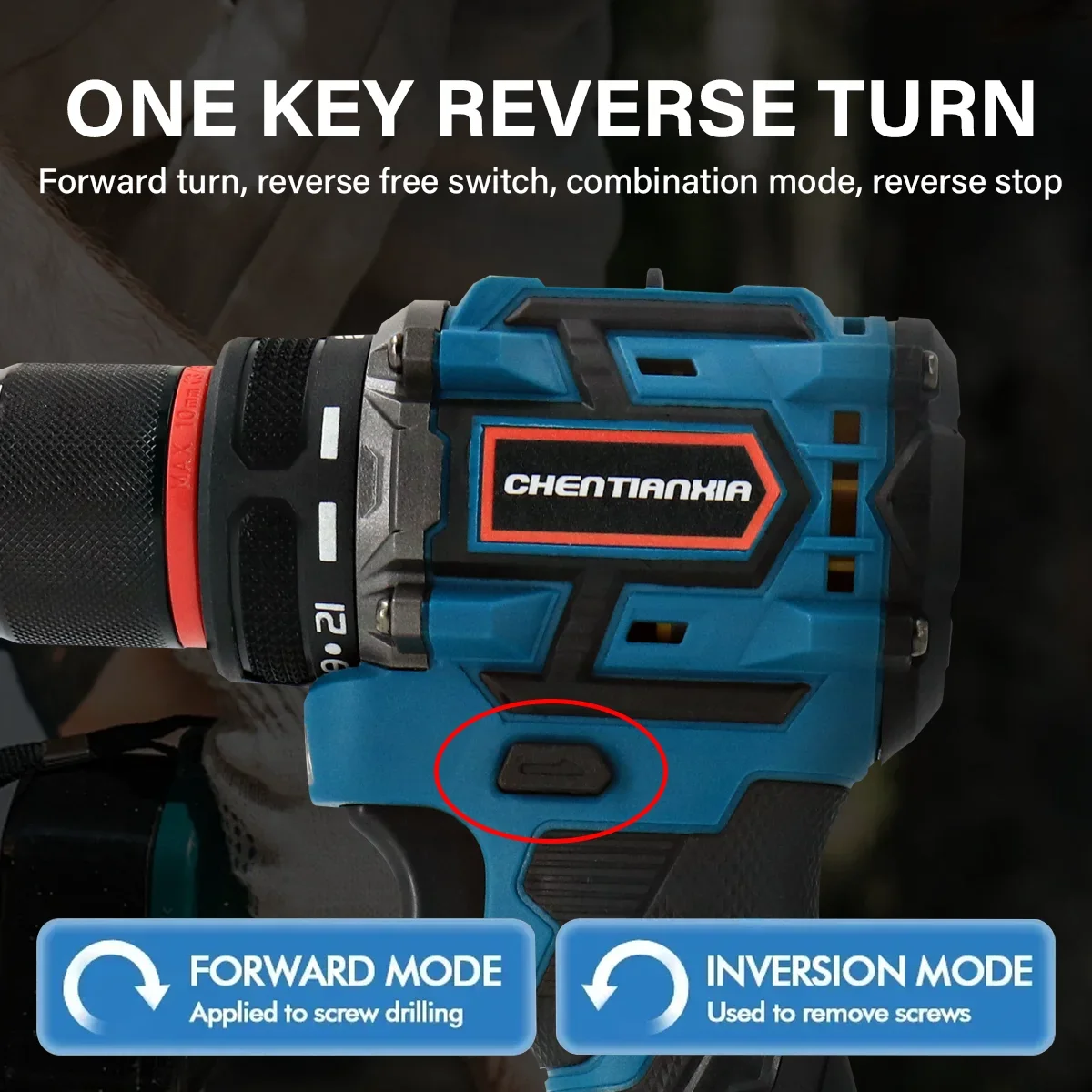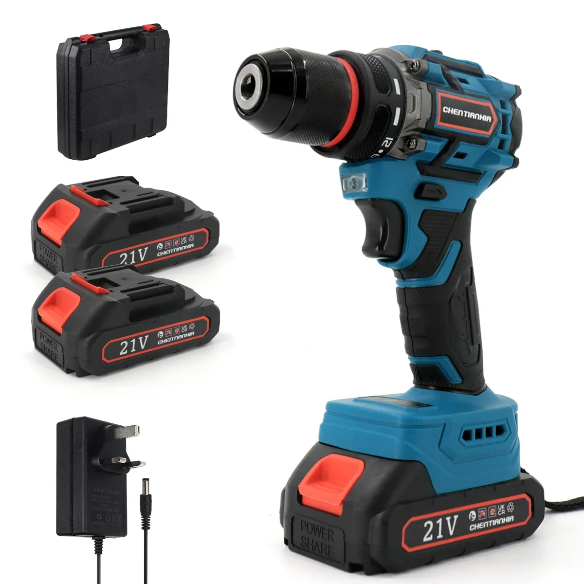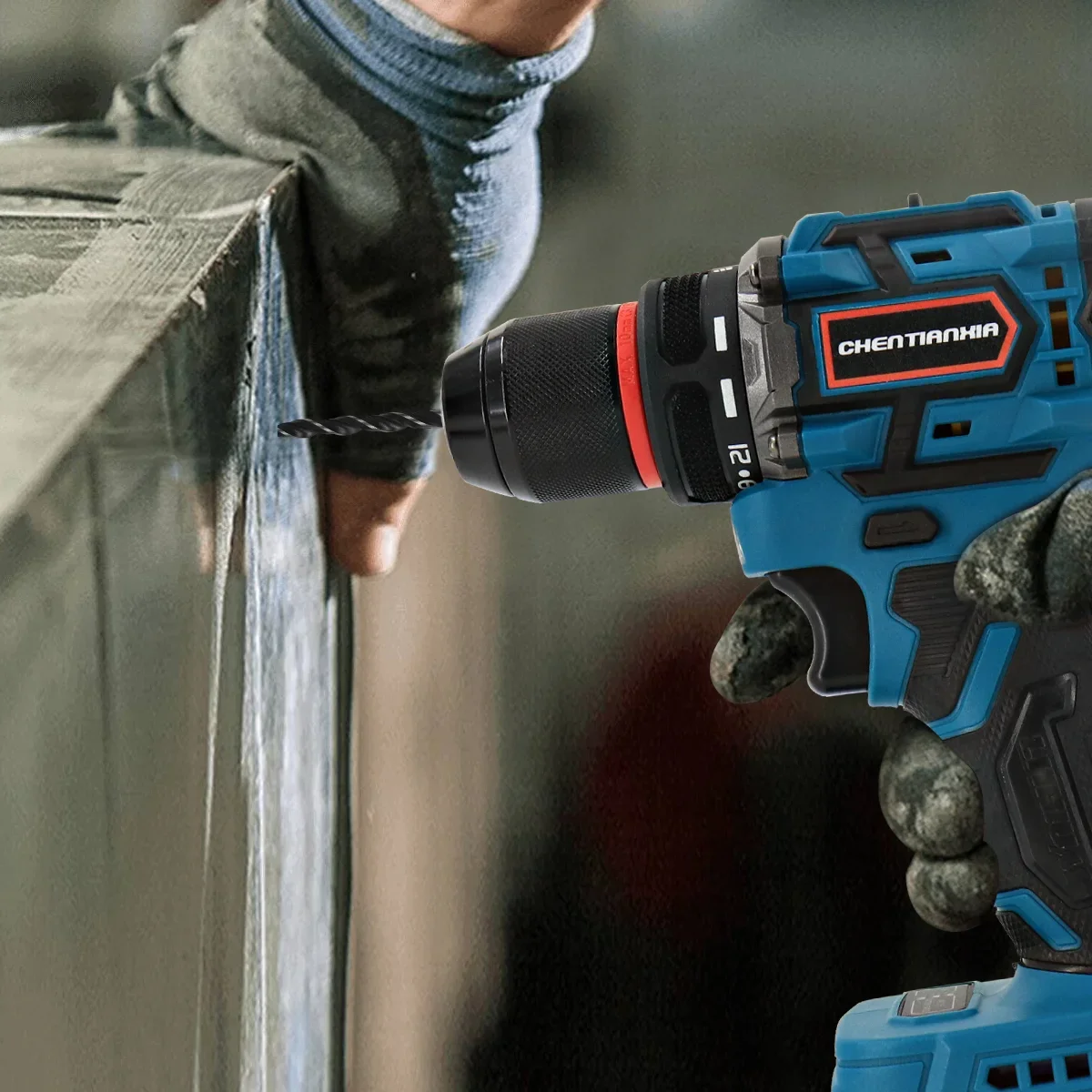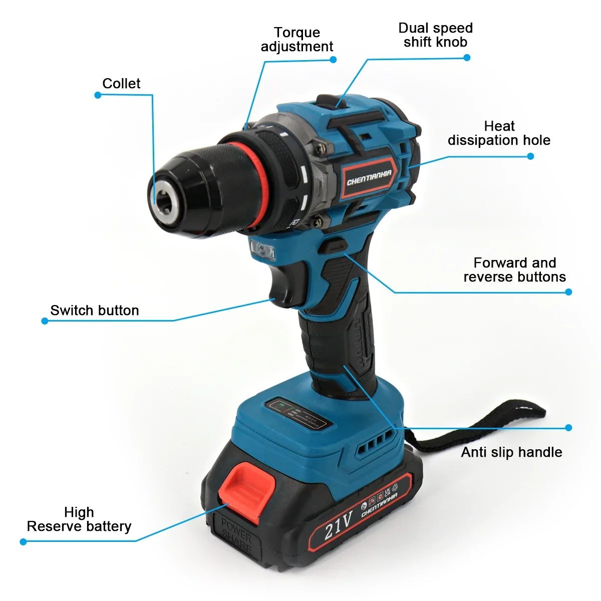 – Powerful electric drill can provide up to 50N.M torque, 25+3 position clutch can better adjust torque accuracy. 2 No-load Speed transmission (0-450 and 0-1450 RPM) for a range of drilling tightening or unscrewing screws on wood, metal and plastic. 3 in 1 working mode (Hammer, Driver, Drill).