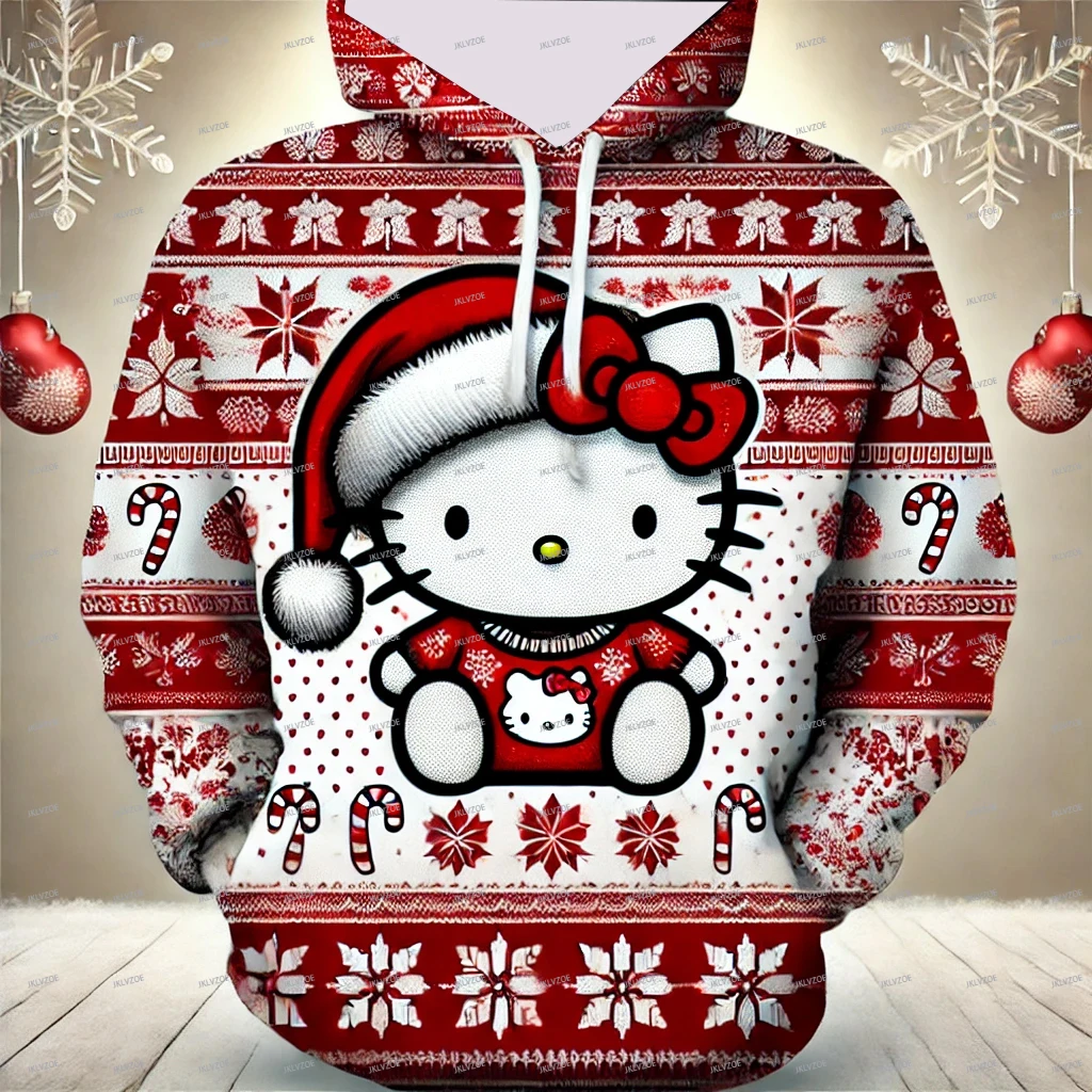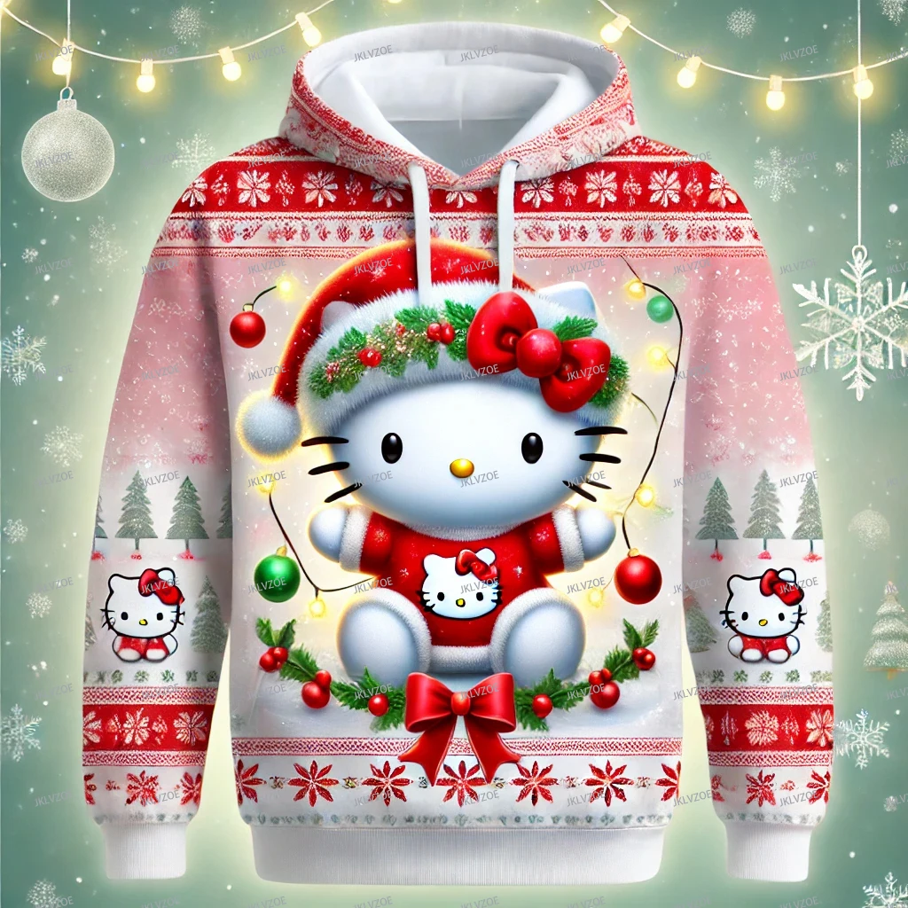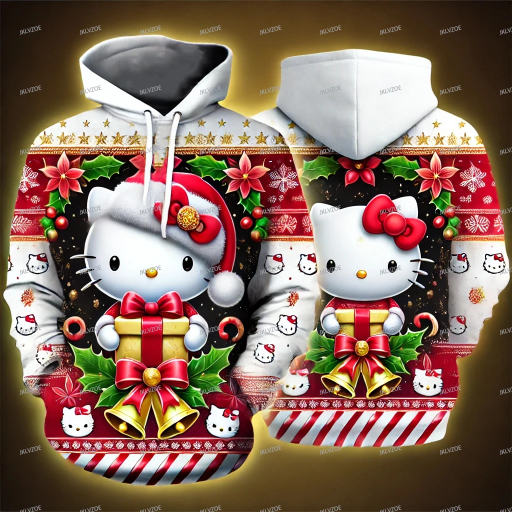 HelloKitty Christmas Graphic Women’s 3D Print Hoodie Casual Lovely Hoodies Sport Sweatshirt For Autumn & Winter Pullovers