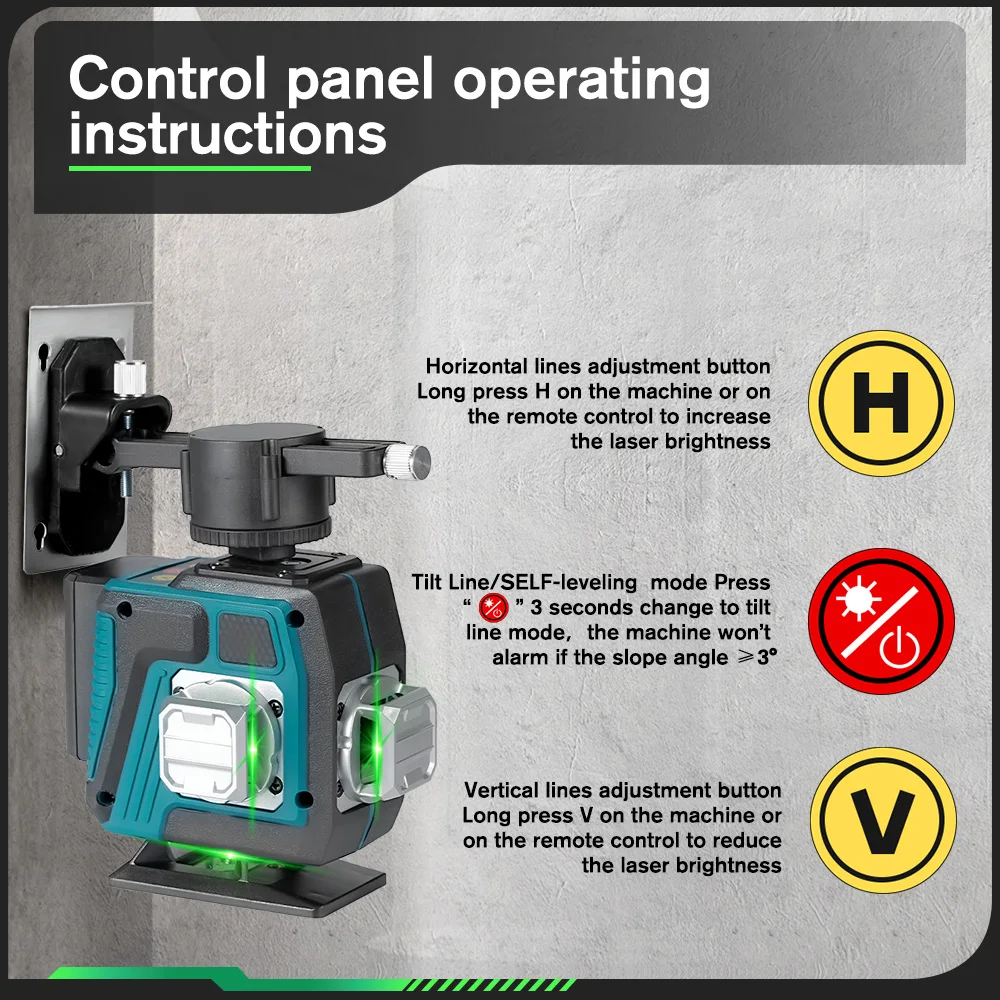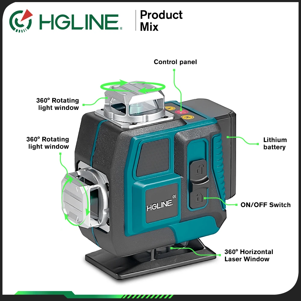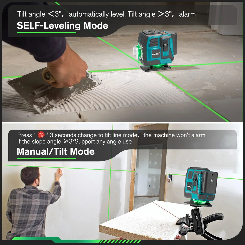– In the self leveling mode, the laser level will automatically level within a range of ± 3 °, otherwise it will alarm and continuously flash.