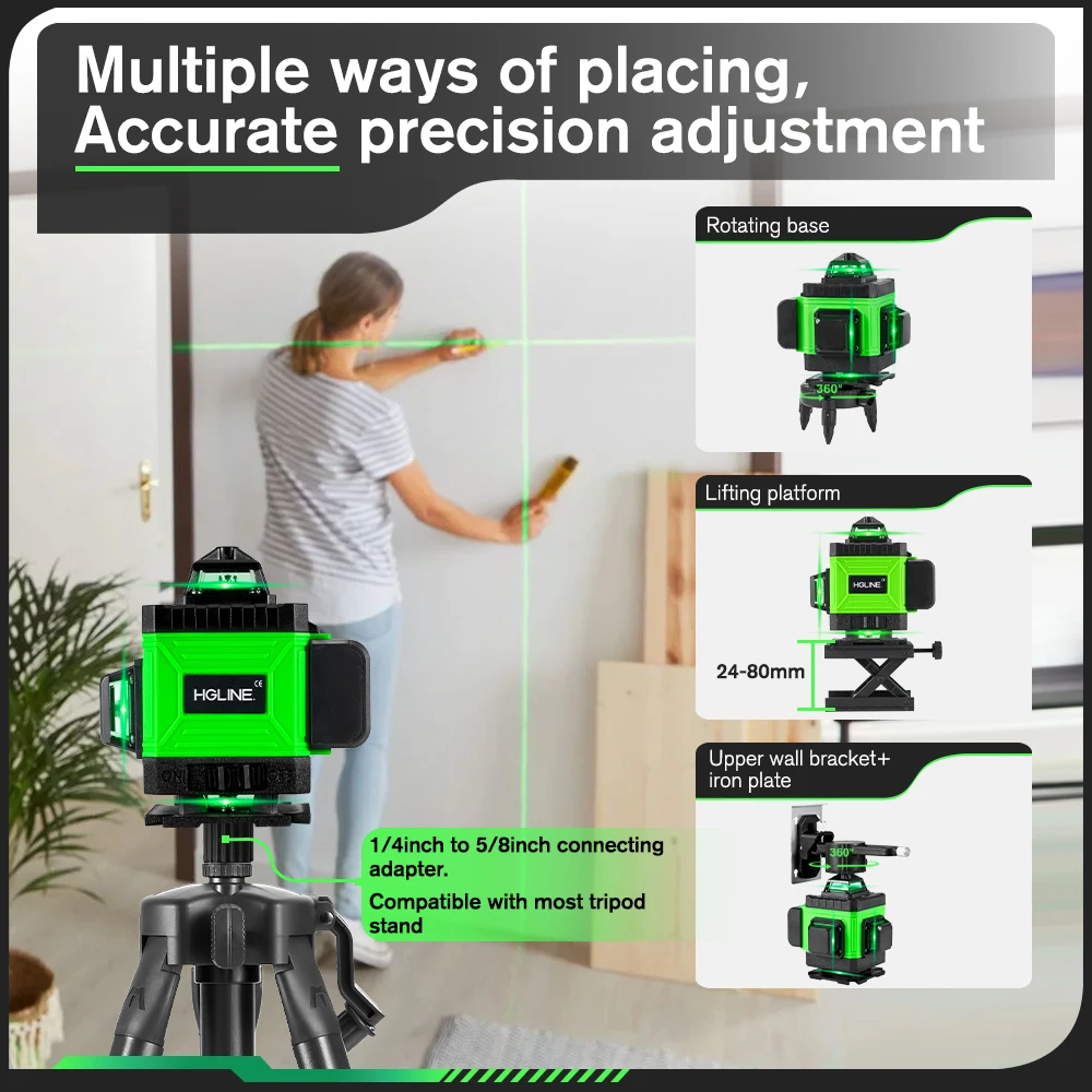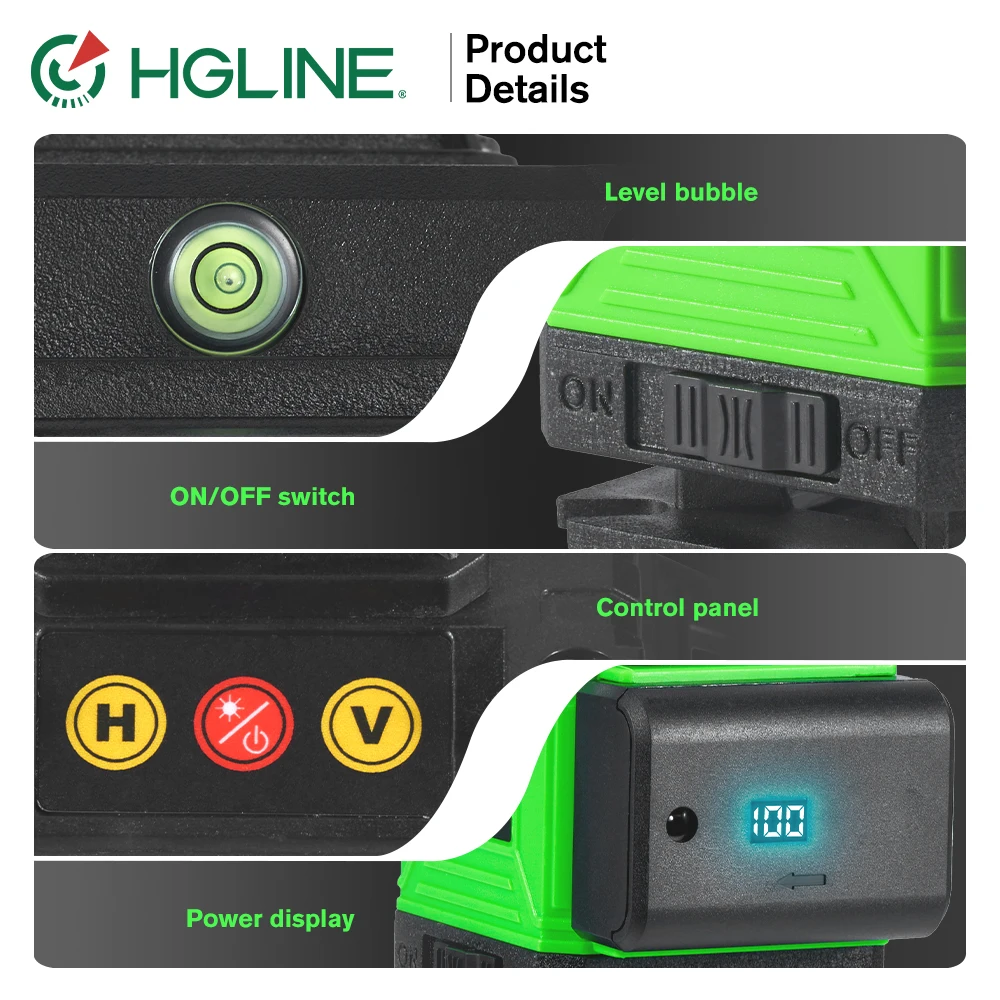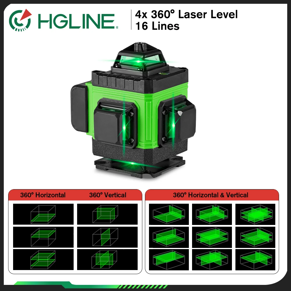 HGLINE 16 Lines 4D Laser Level Green Line Self-Leveling 360° Horizontal Vertical Super Power Laser Level with APP Remote Control