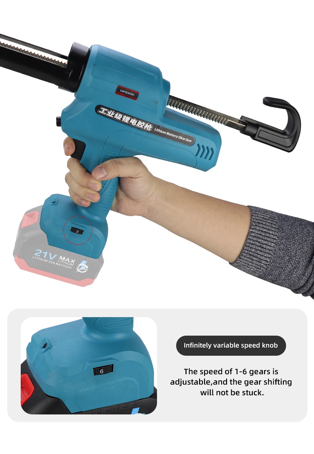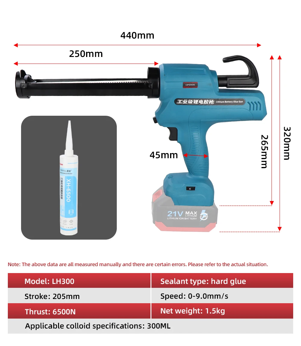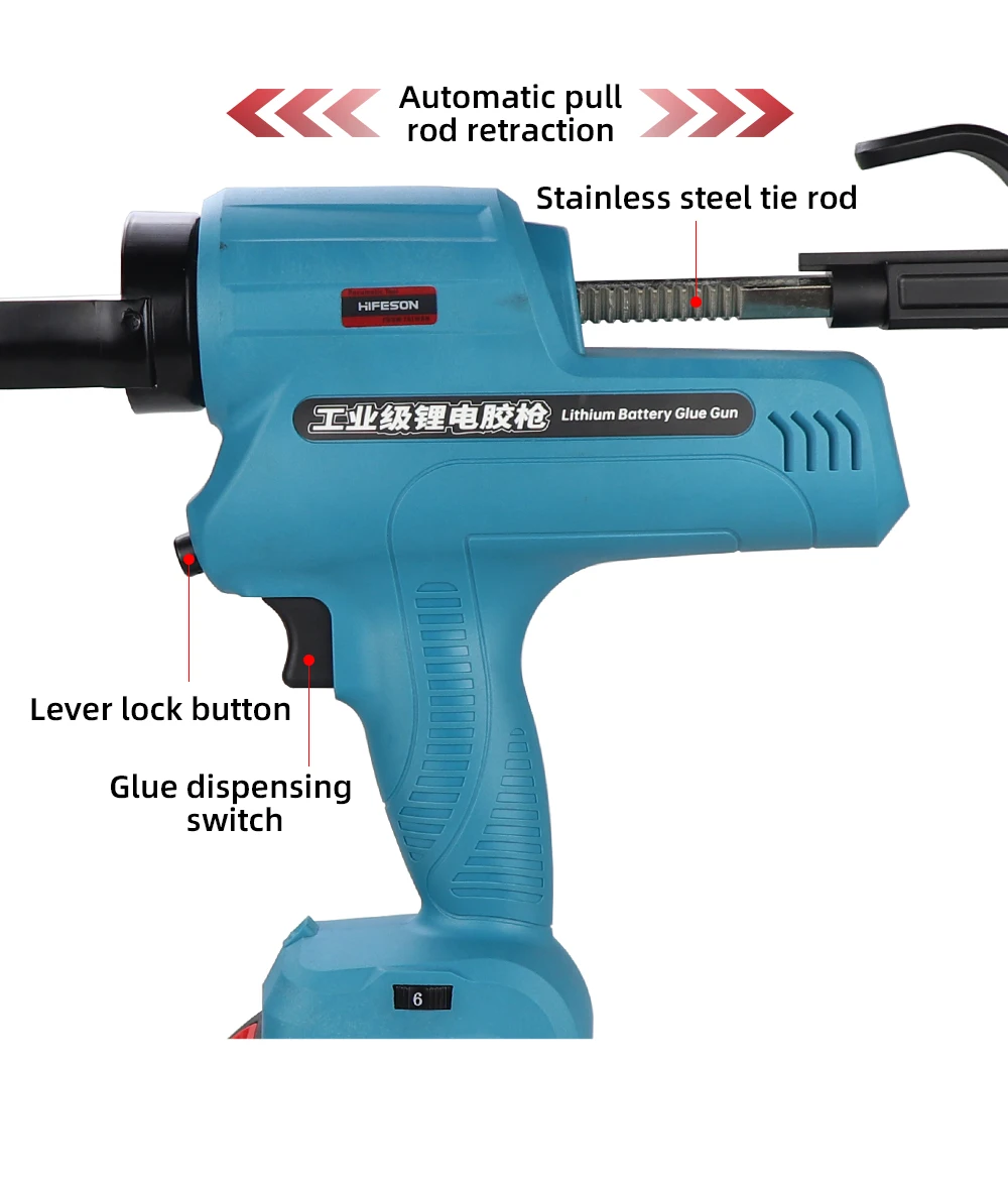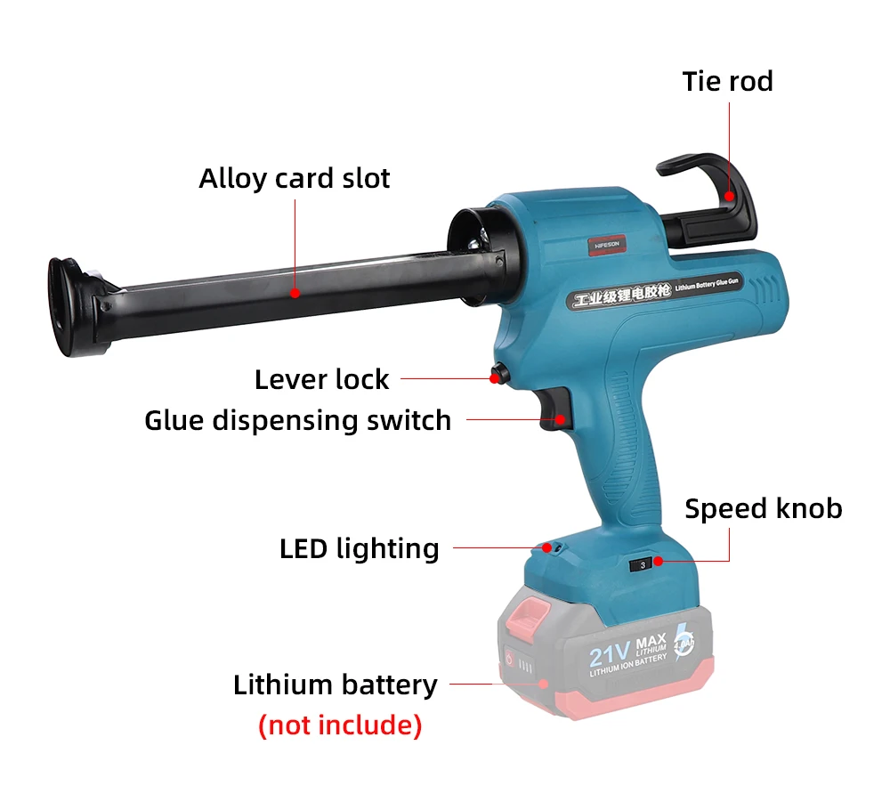 HIFESON 300ml Electric Caulking Gun Makita Battery Glue Gun Wireless Glass Adhesive Glue Seal Sealant Tool For 18V 21V 26V