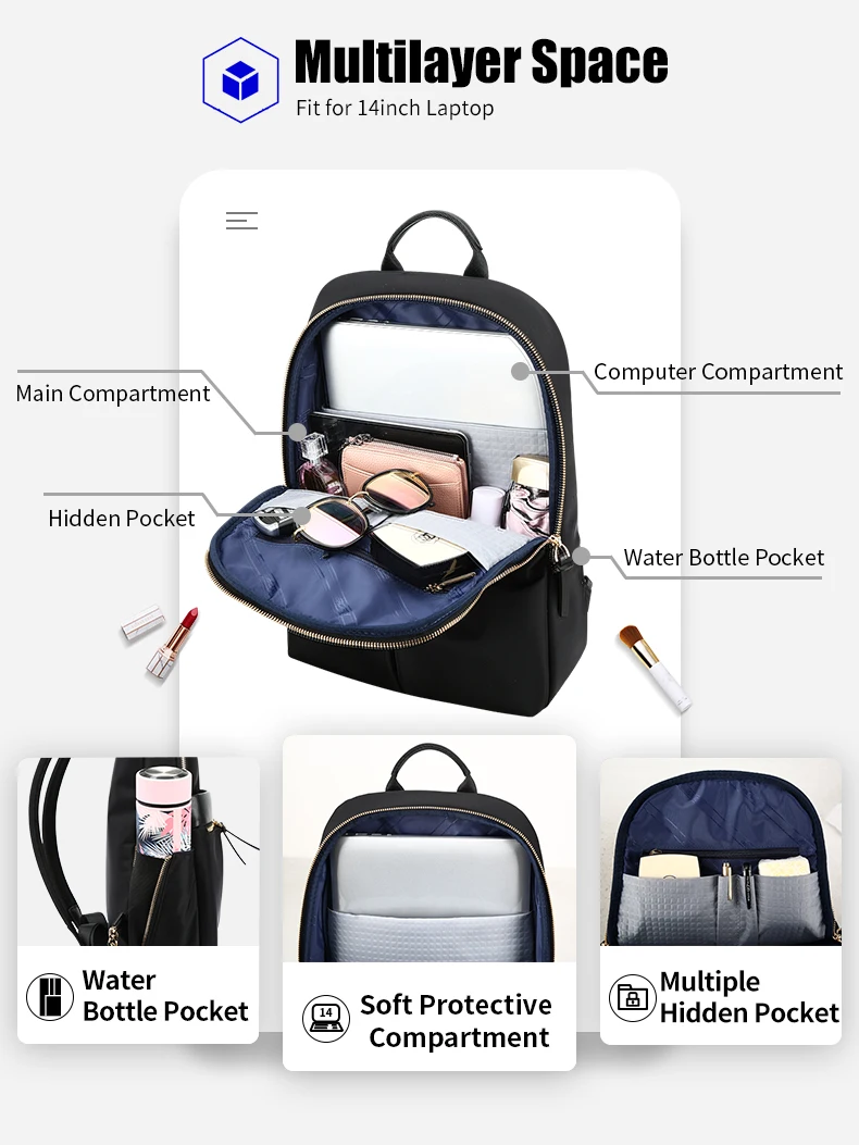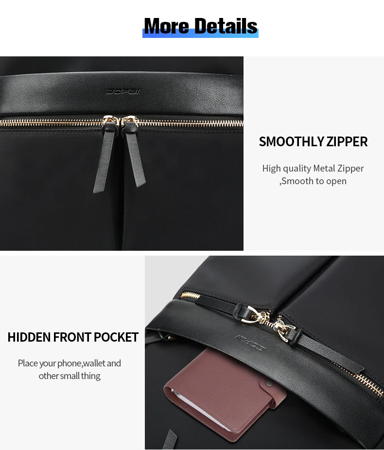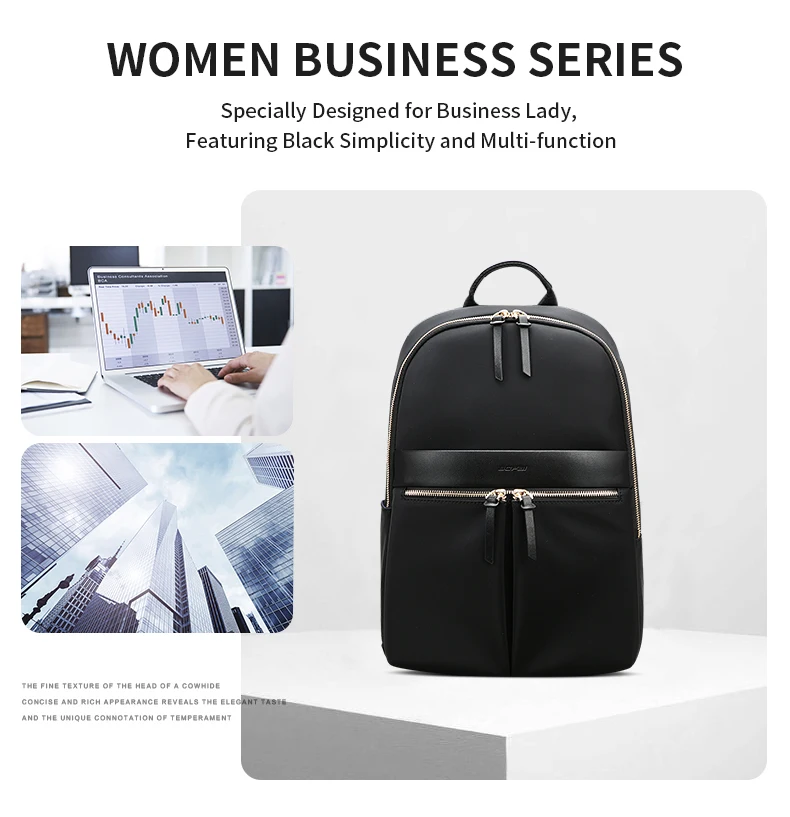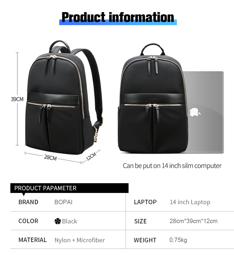 HIGH QUALITY BOPAI Women Backpack 14 Inch Slim Laptop Black Daypack Work Backpacking Waterproof Ladies Business Anti-theft Bag