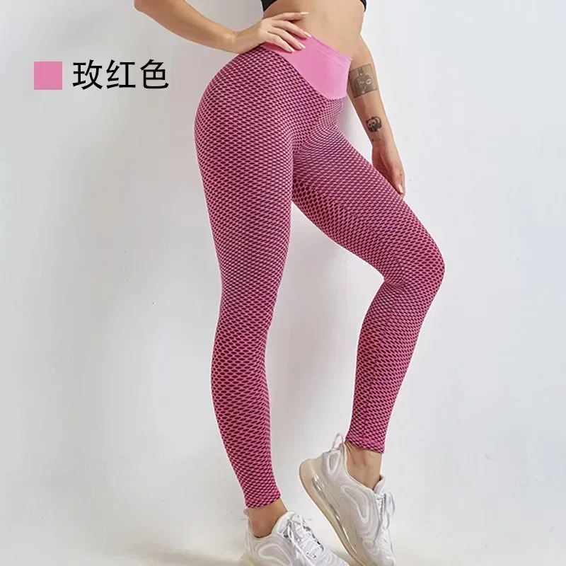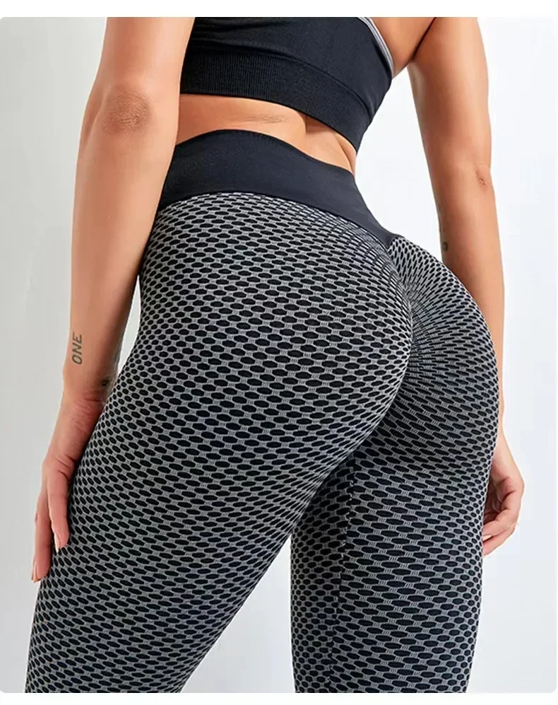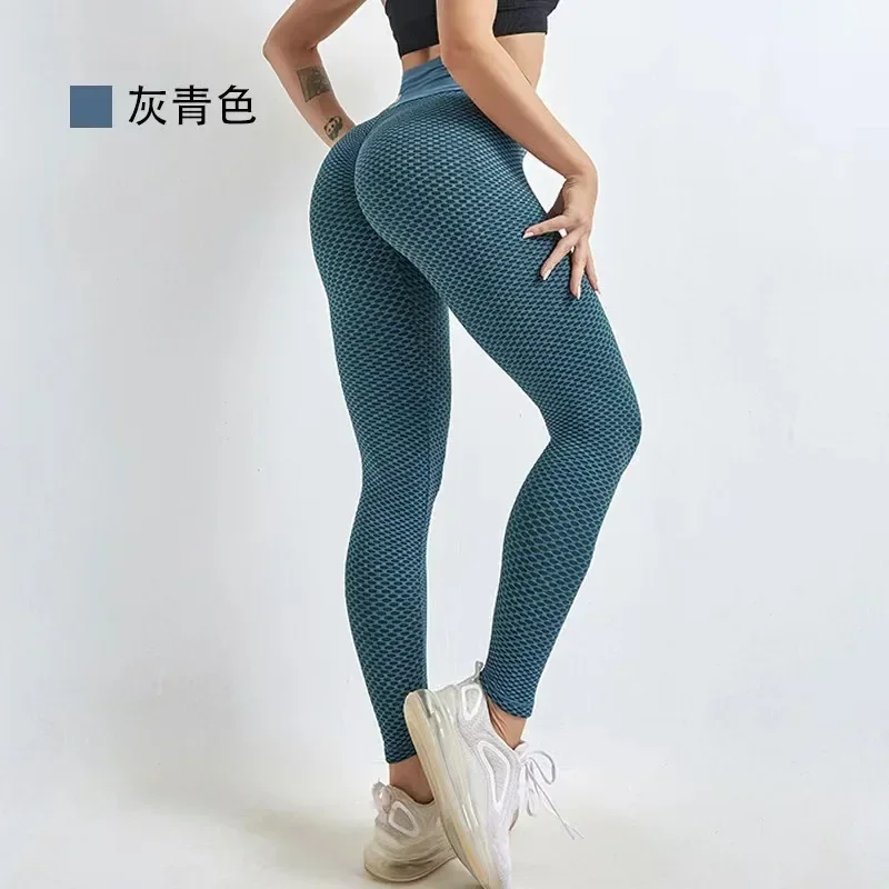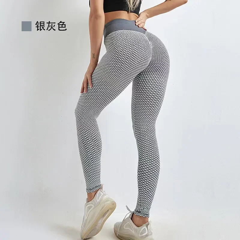High Waisted Seersucker Yoga Leggings for Women Yoga Pants Sports Leggings Sportswear Stretchy Fitness Gym