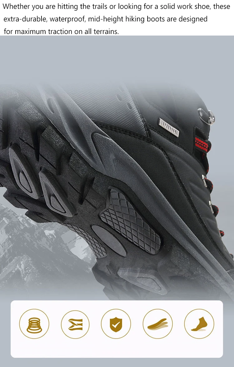 Hiking Shoes Men Waterproof Lightweight Trekking Backpacking Mountain Sneakers Outdoor Mid Low Top Winter Snow Warm Work Boots