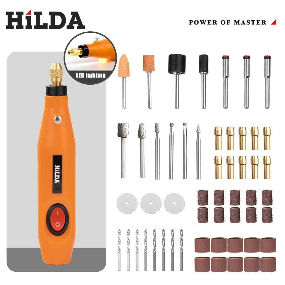 HILDA 12V Mini Engraving Pen Mini Drill Rotary Tool Engraving Pen With Grinding Accessories Set Multifunction